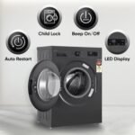 Additional Features: LoadSense, Auto water level, Temp. Range – Cold/20/30/40/60/95℃, Crease Care, Shock Proof, Silent operation, Tempered Glass Door, Foam sensing & removal, Auto Balance, Child Lock, Beeper On/Off, Time Delay, Program Step indicator, Start/Pause Indication, Door Lock Indication, Error Message Indication, Error Message Alarm, Adjustable Leg, Material – Polyproplene