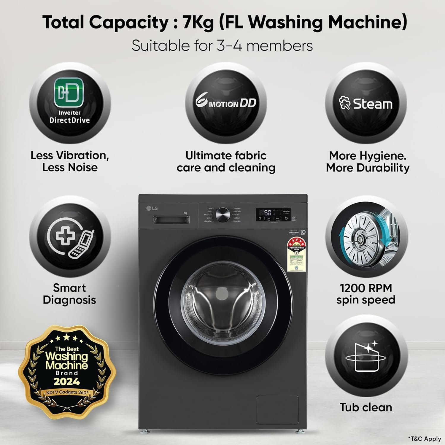Fully-automatic front load washing machine with Hygiene Steam/direct-drive technology: Best Wash Quality, Energy and Water efficient