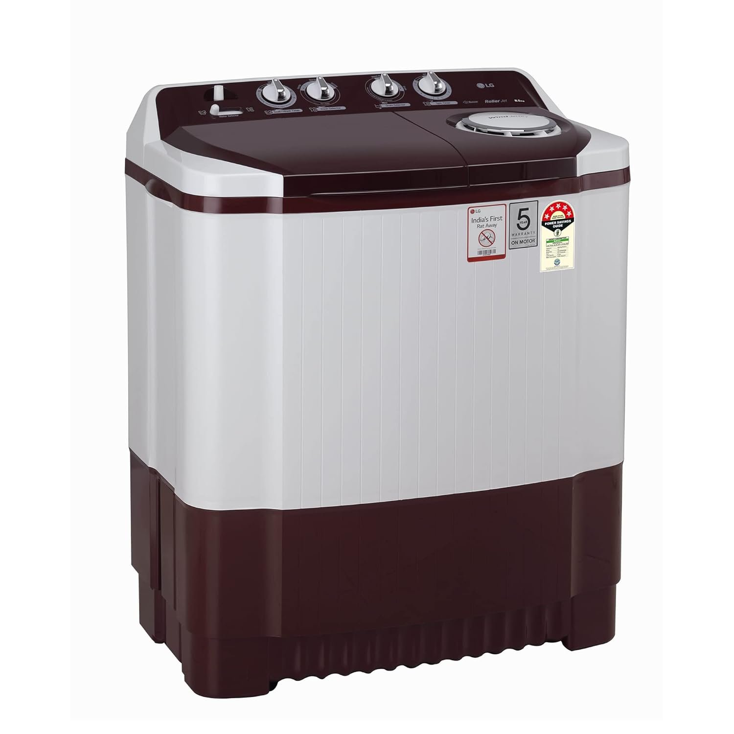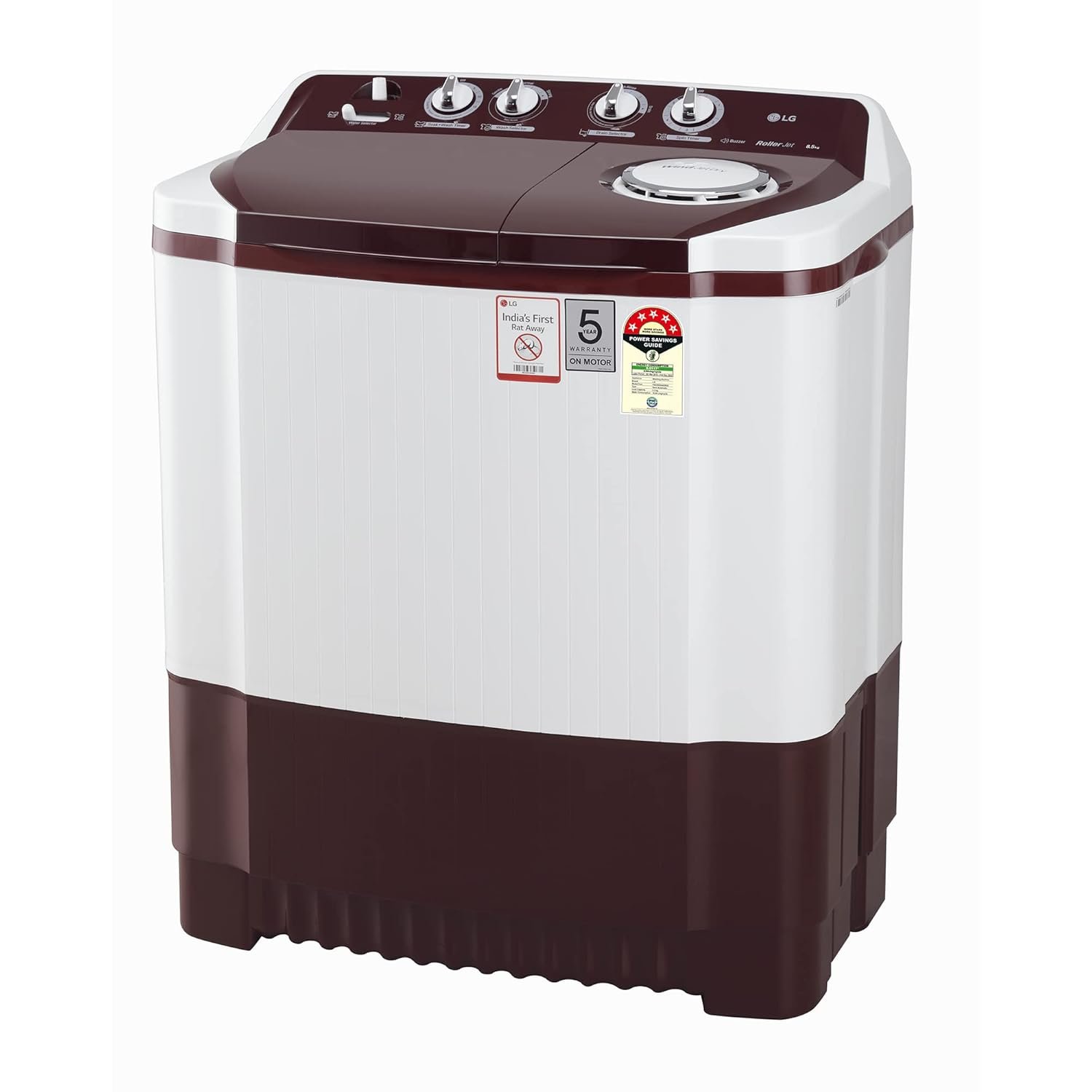 LG 8.5 kg 5 Star Semi-Automatic Top Load Washing Machine (P8530SRAZ, Burgundy, Roller Jet Pulsator)