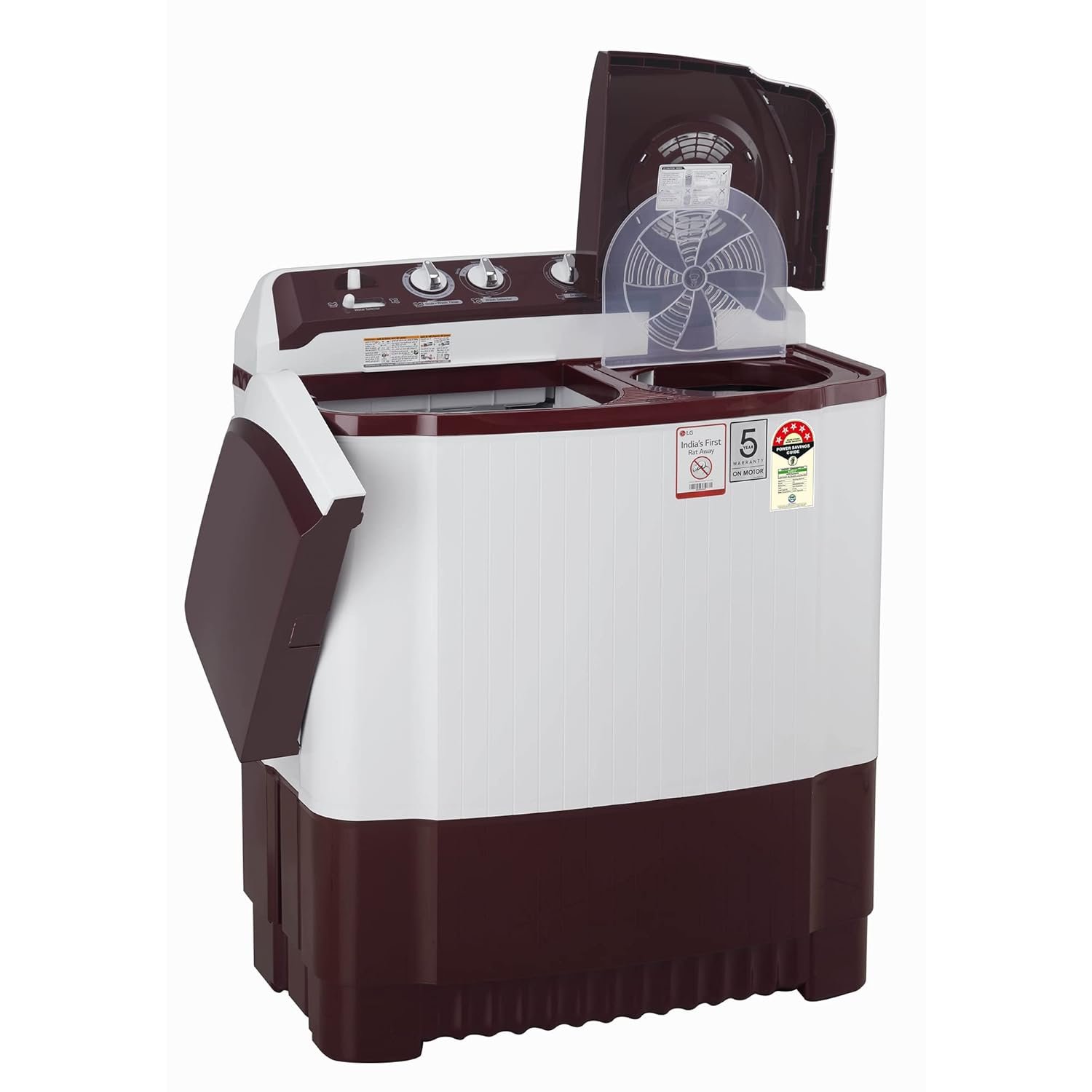 Additional Features: Rat Away Feature- less damage in the machine by rat bite, Durability, Rust Free Plastic Base, Spin Timer: 10 Minutes, Wash Timer: 15 Minutes