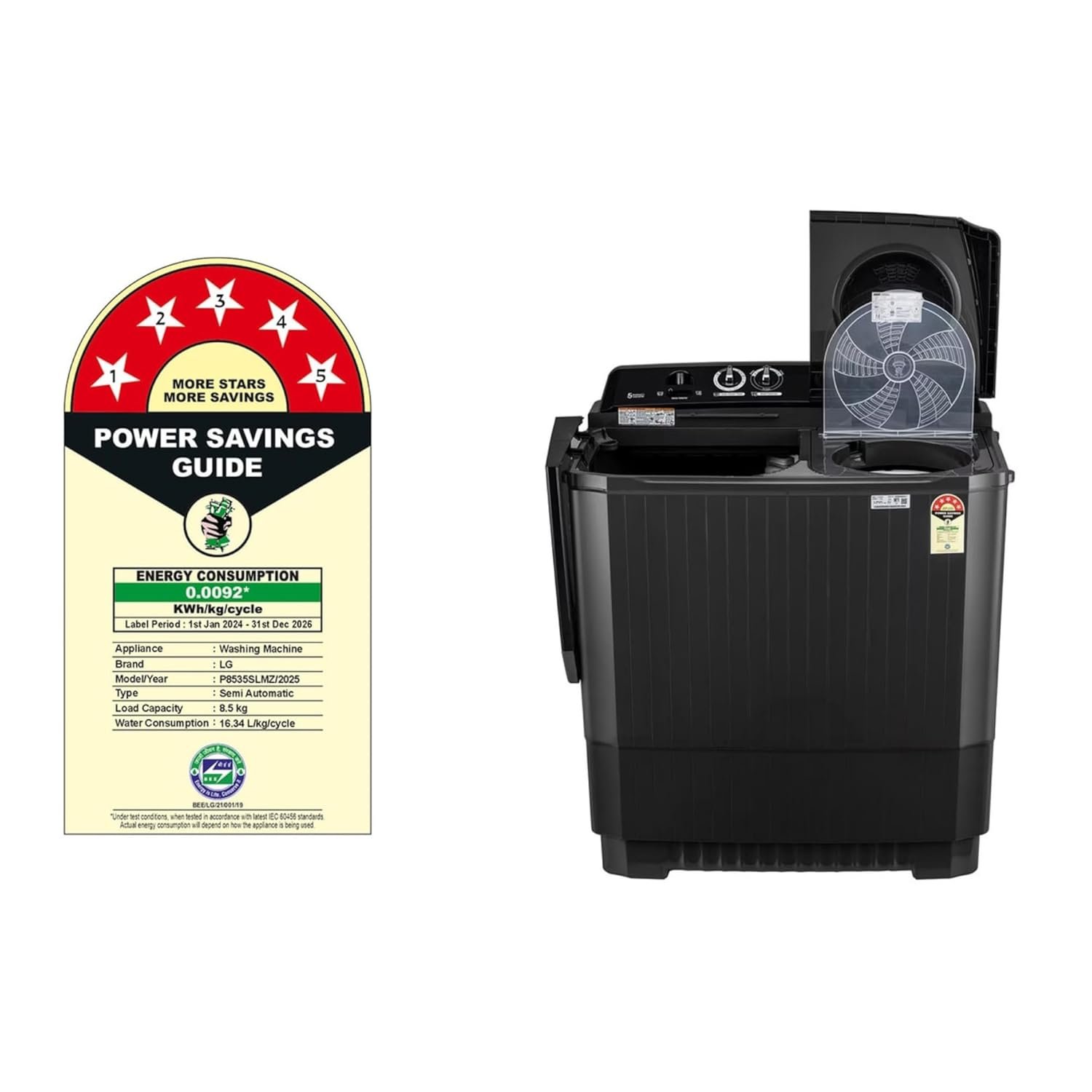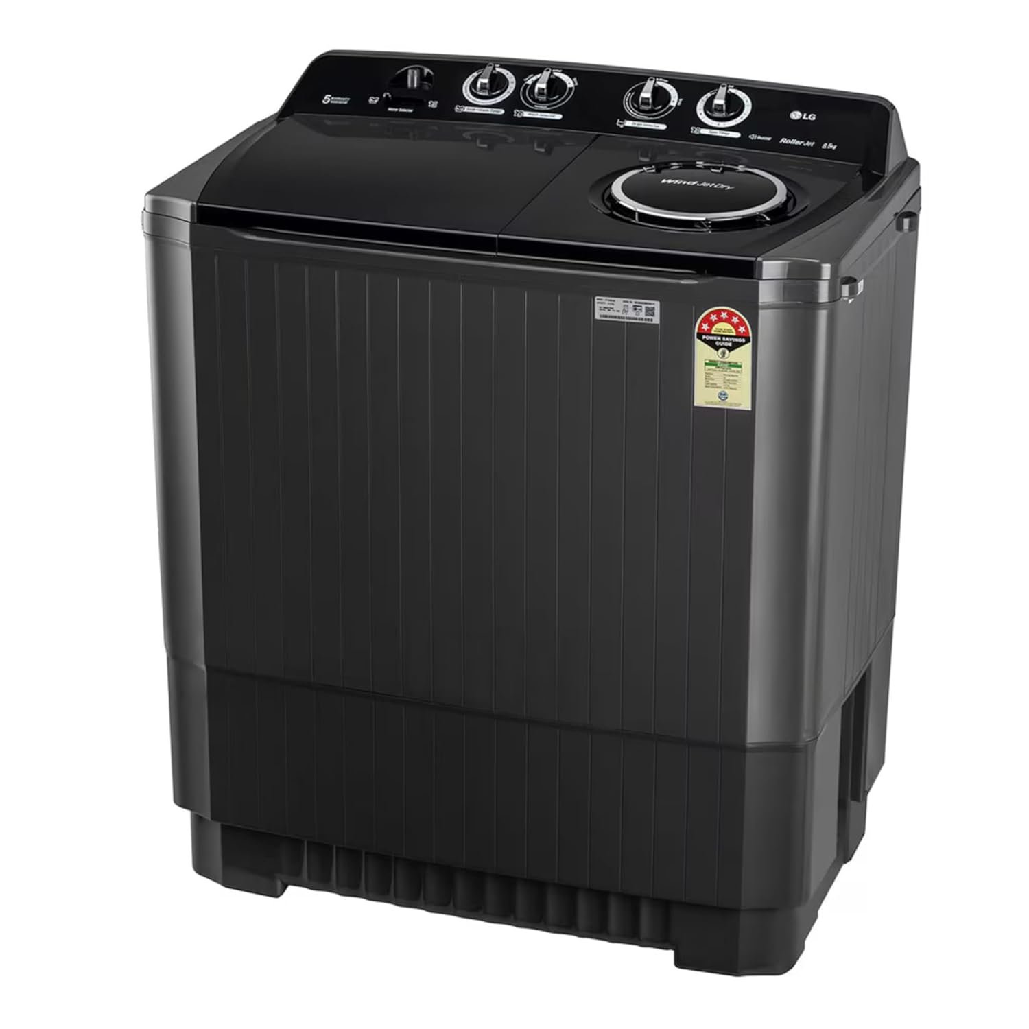 The LG 8.5 Kg Semi Automatic Top Load Washing Machine (P8535SLMZ, 2025 Model) is designed for powerful and efficient washing. Equipped with a Roller Jet Pulsator that increases friction for better wash quality, and a Soak feature for deep cleaning of tough stains, this washing machine is ideal for medium to large families. The stylish Full Black finish adds elegance to your laundry space, while its energy-efficient semi-automatic design saves both water and electricity. With durable plastic body, easy-to-use controls, and multiple wash programs, it ensures long-lasting performance with convenience.