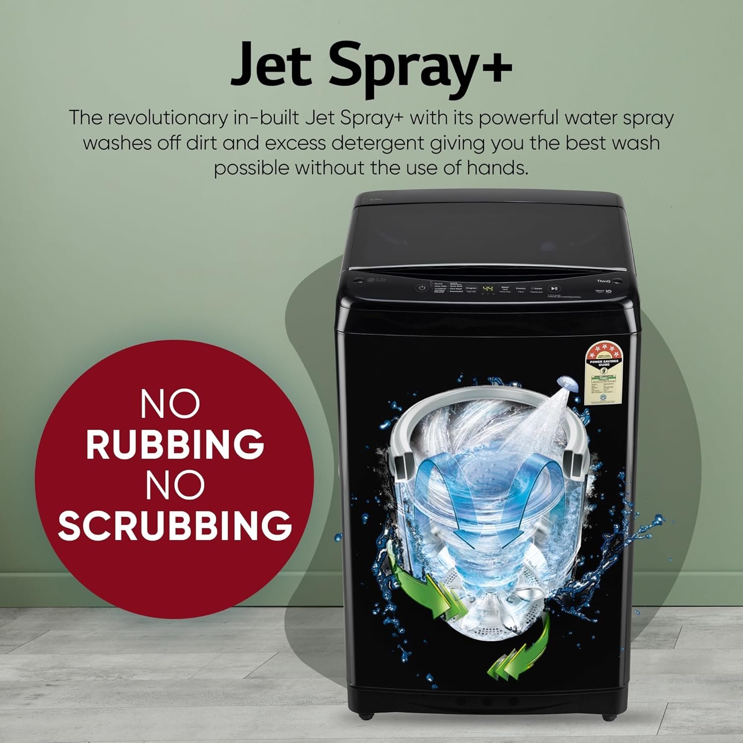 Loosens and removes tough stains with one touch – no need for manual scrubbing before wash.