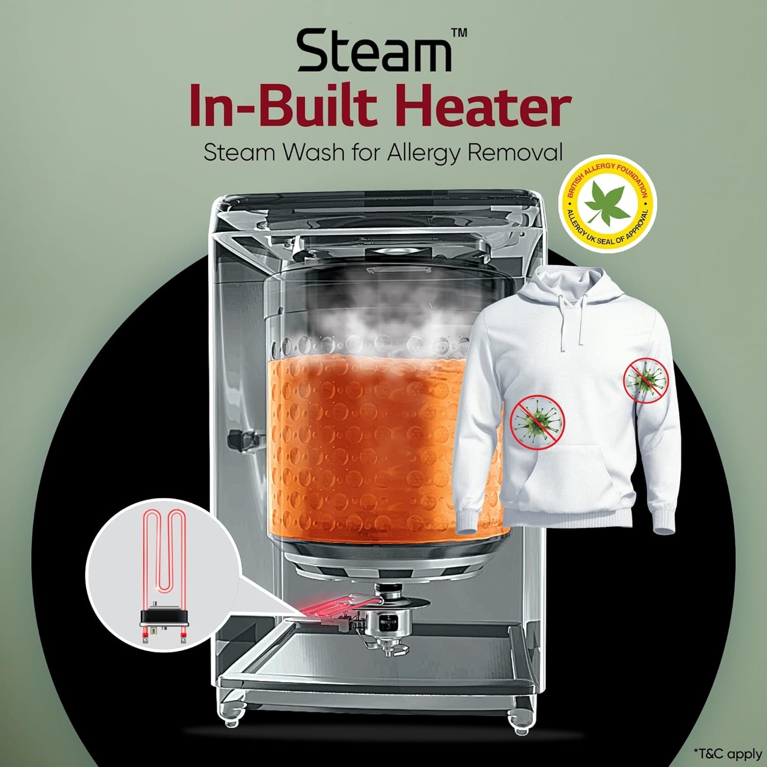 Now say goodbye to house dust mite and allergen with LG Top Load Washing Machine’s In-Built Heater.