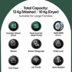 Capacity: 13 KG (Wash) & 10 KG (Dry): Suitable for large families