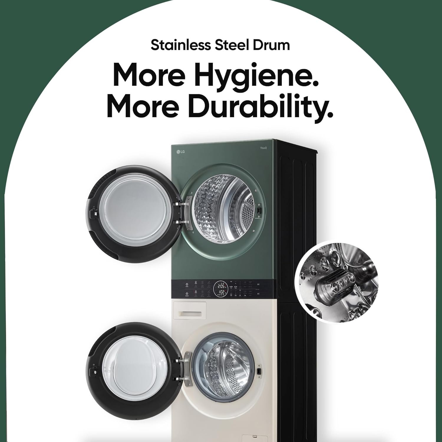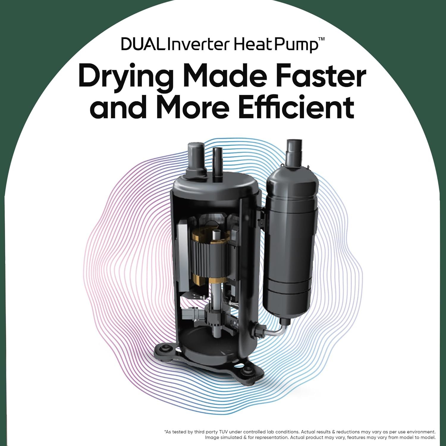 Additional Features: Dryer Features – Condenser Dryer (Ventless), Heat Pump Electric, DUAL Inverter HeatPump, Auto Cleaning Condenser, Sensor Dry, Dual Dry, Dual Lint Filter, End of Cycle Signal, LoadSense, Embossing Inner Drum