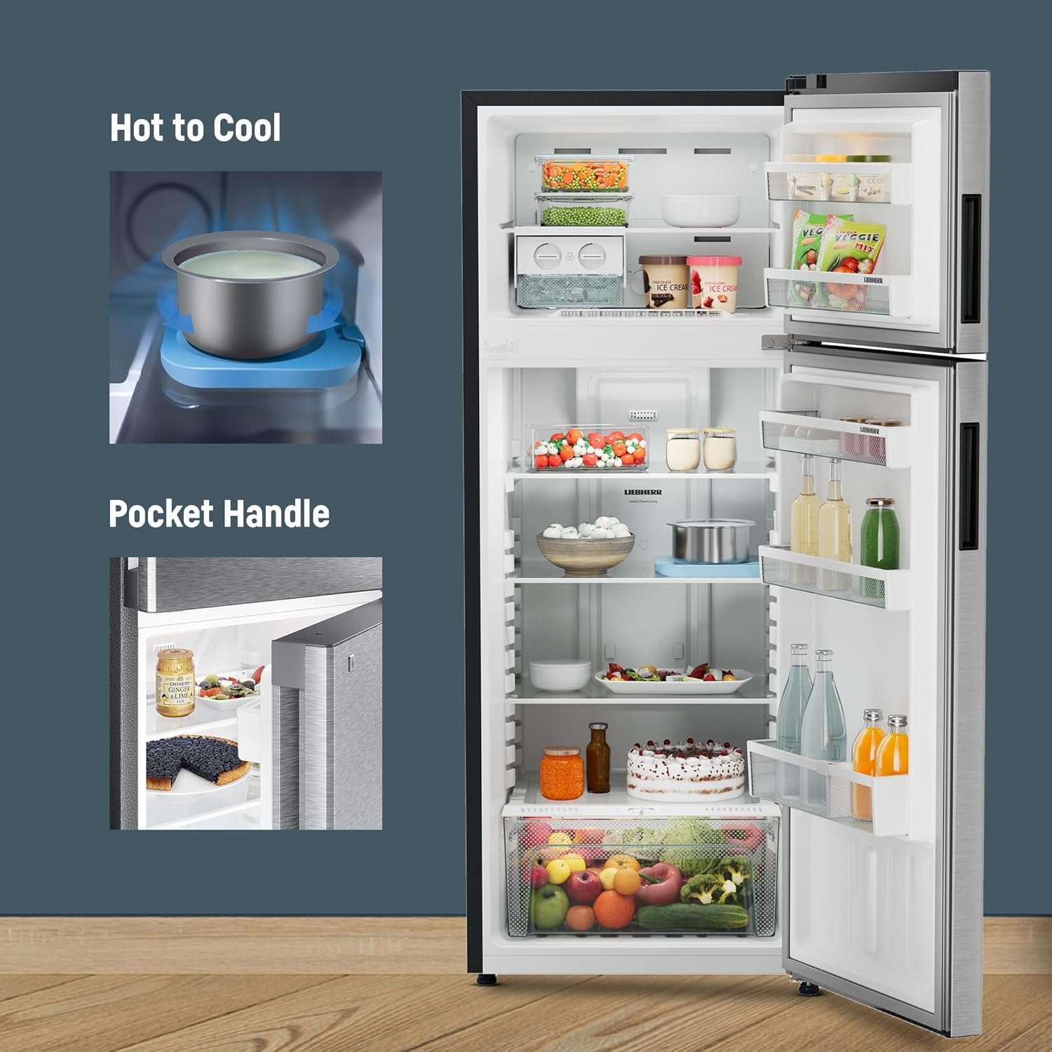 Liebherr Frost Free Refrigerator Industry First Hot to Cool NextGen 8 Step Inverter Compressor Bigger Vegetable basket with Humidity slider Adjustable shelves Heat Sensor Runs on Home Inverter