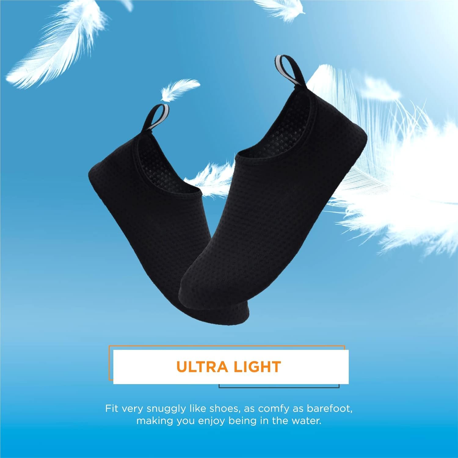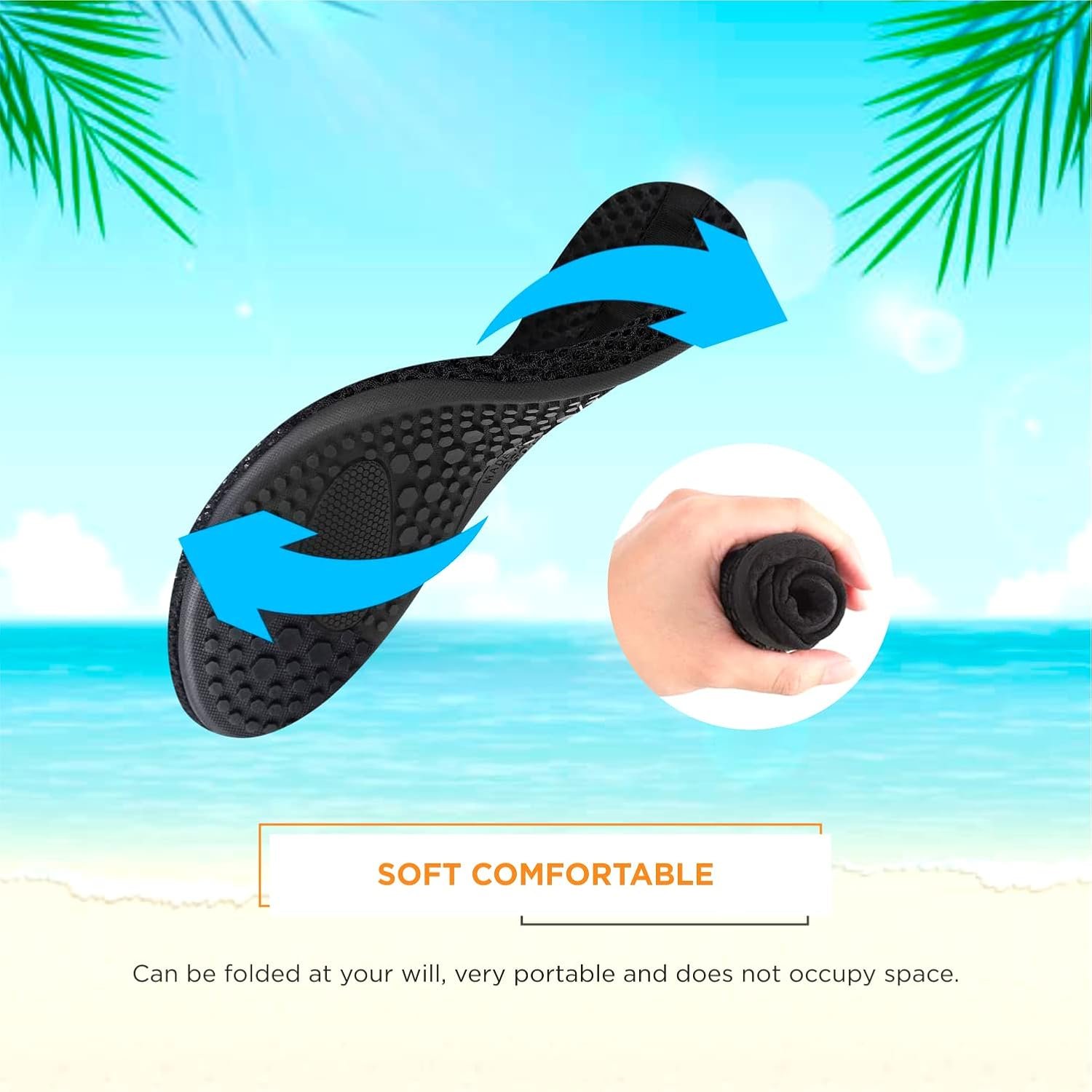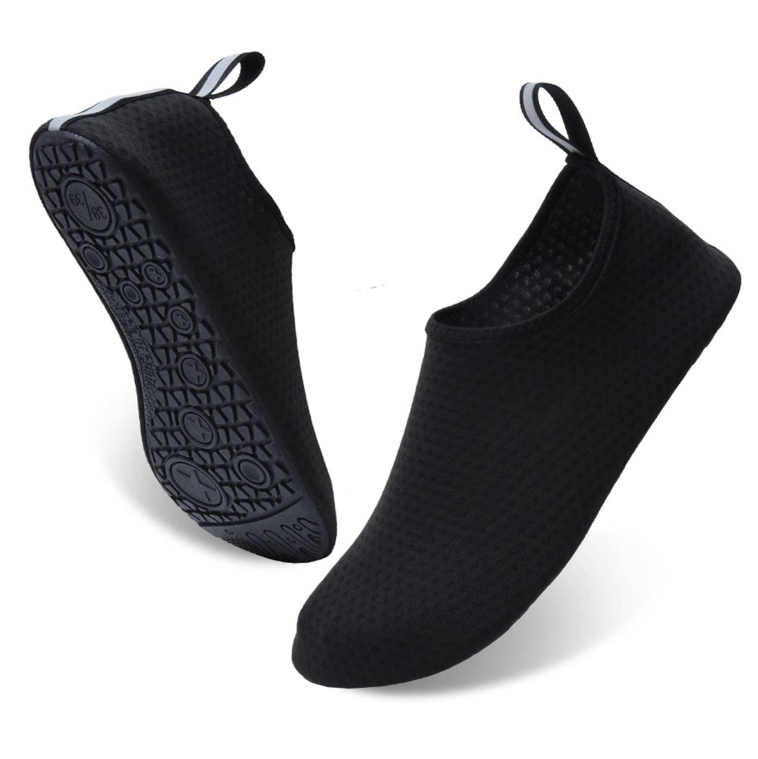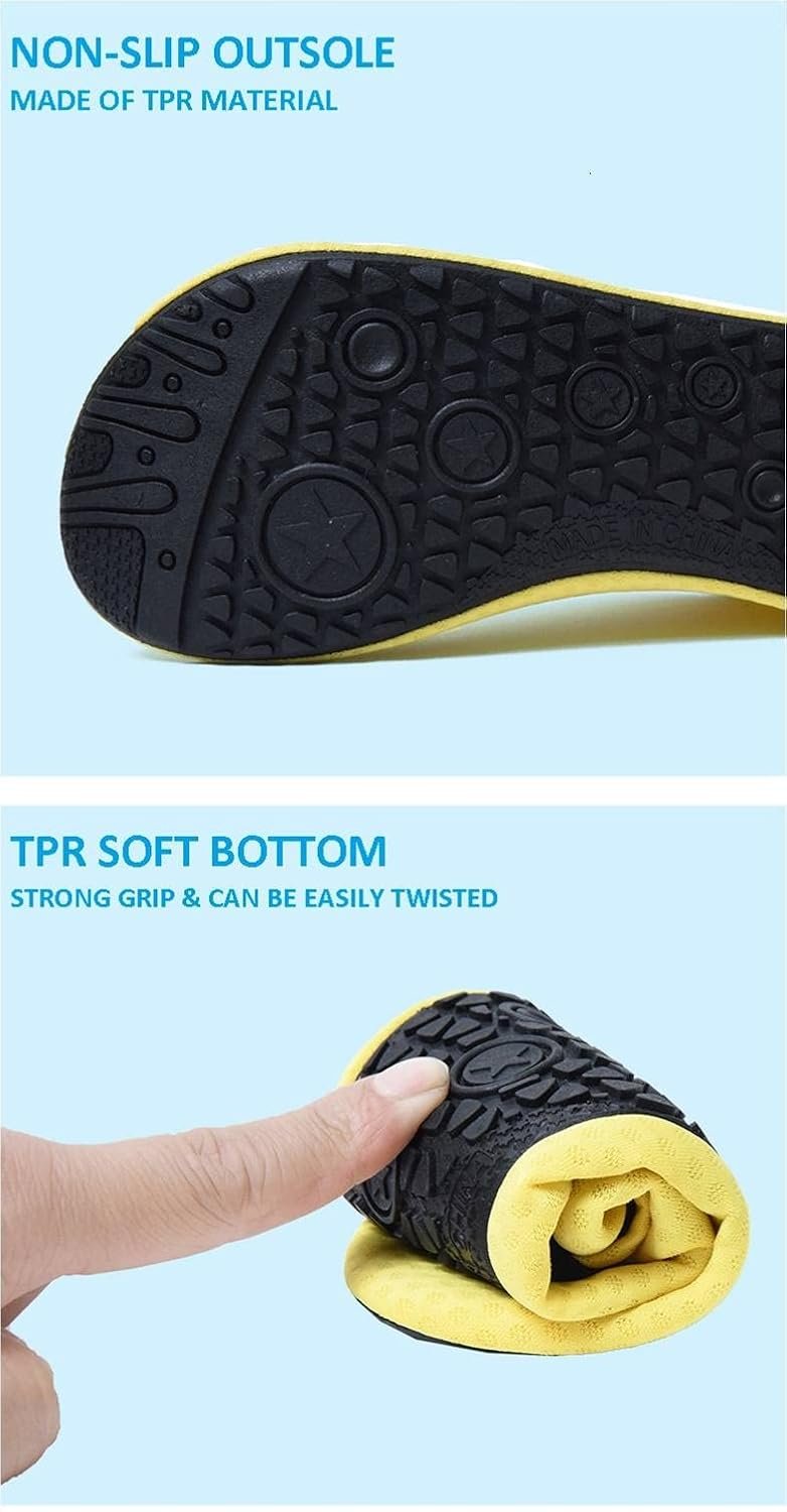 Quick-dry water shoes, smooth neck design of aqua socks prevents chafing when wearing our water shoes. It is convenient to wear and take off. Lightweight and compressible for easy packing.