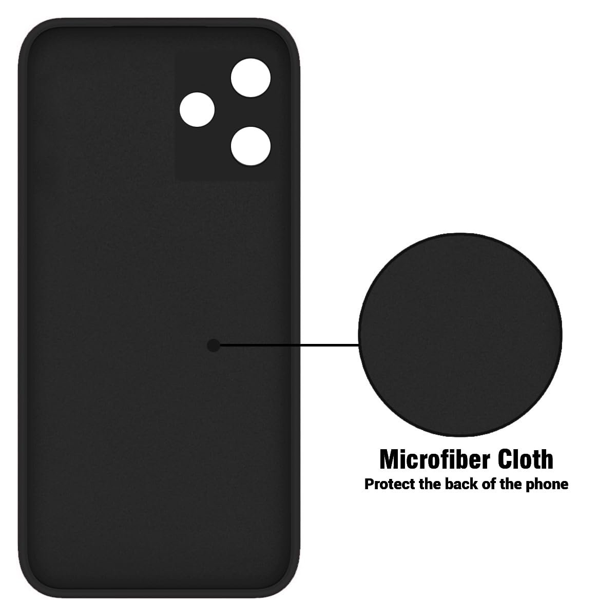 LIRAMARK Silicone Soft Back Cover Case with Micro-Fibre Cloth On Inner Side for Redmi 12 5G / Poco M6 Pro 5G (Black)
