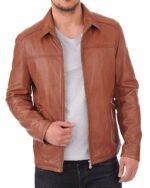 Luis Leather Men’s Brown Solid Biker Jacket