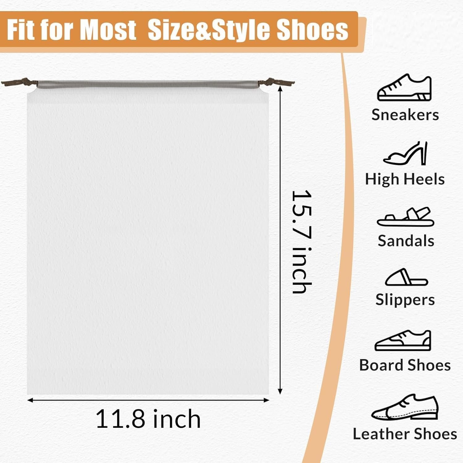 ✅𝐌𝐮𝐥𝐭𝐢-𝐅𝐮𝐧𝐜𝐭𝐢𝐨𝐧𝐚𝐥 𝐒𝐭𝐨𝐫𝐚𝐠𝐞 𝐒𝐨𝐥𝐮𝐭𝐢𝐨𝐧: These bags are not just for shoes! 𝐔𝐬𝐞 𝐭𝐡𝐞𝐦 𝐚𝐬 cosmetic bags, toiletry pouches, packing organizers, laundry bags, or gym accessories bags. Great for home storage, travel, gym, or yoga sessions, keeping all your essentials organized and protected.