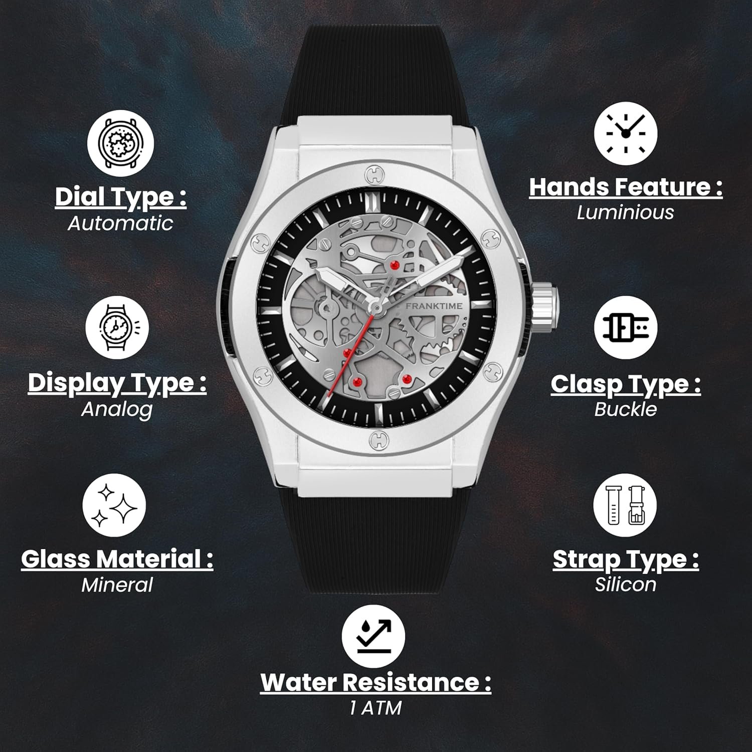 FRANKTIME has always been inspired by creativity and ingenuity. We have strived to bring new life into the industry by making fashionable watches good quality and accessories that are both accessible. The Dial is easy to read and the Quartz movement it this watch provide reliable performance. It’s greats for everyday use but can also be dressed up for special event. This watch not only adds to the fashion enhances your personality.