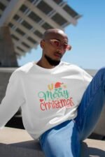 Celebrate the festive season with our Merry Christmas Sweatshirt! This unisex holiday features a fun and unique design perfect for Christmas celebrations. Whether you’re gathering with family, attending a holiday party, or simply embracing the cozy winter vibes, this Christmas shirt is a cheerful addition to your wardrobe. It also makes a great gift for friends and loved ones. Spread holiday cheer with this delightful Xmas apparel.