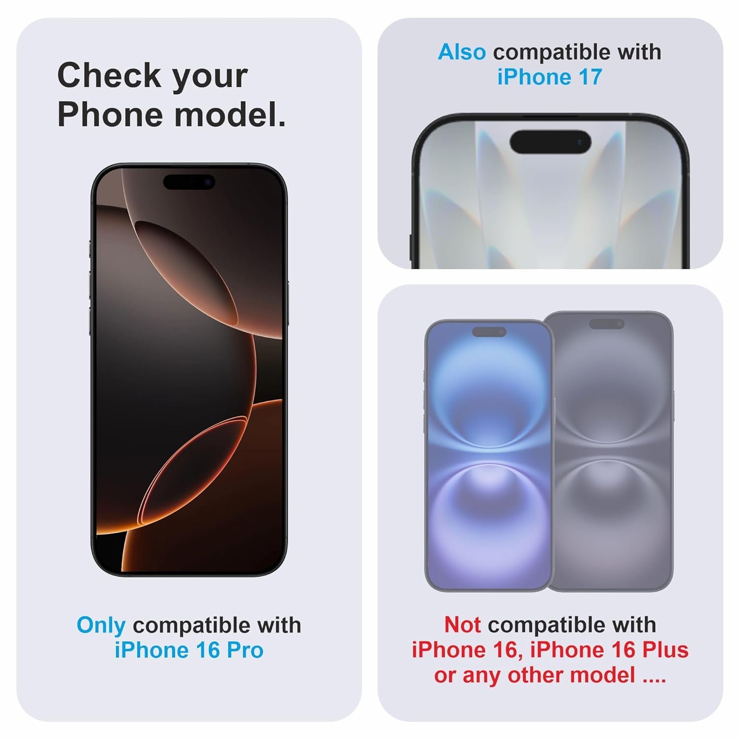 Compatible Device: This Military-Grade Gorilla Tempered Glass is Perfectly compatible with iPhone 16 Pro (6.3 Inch). Area of coverage: Full Edge to Edge Screen Coverage