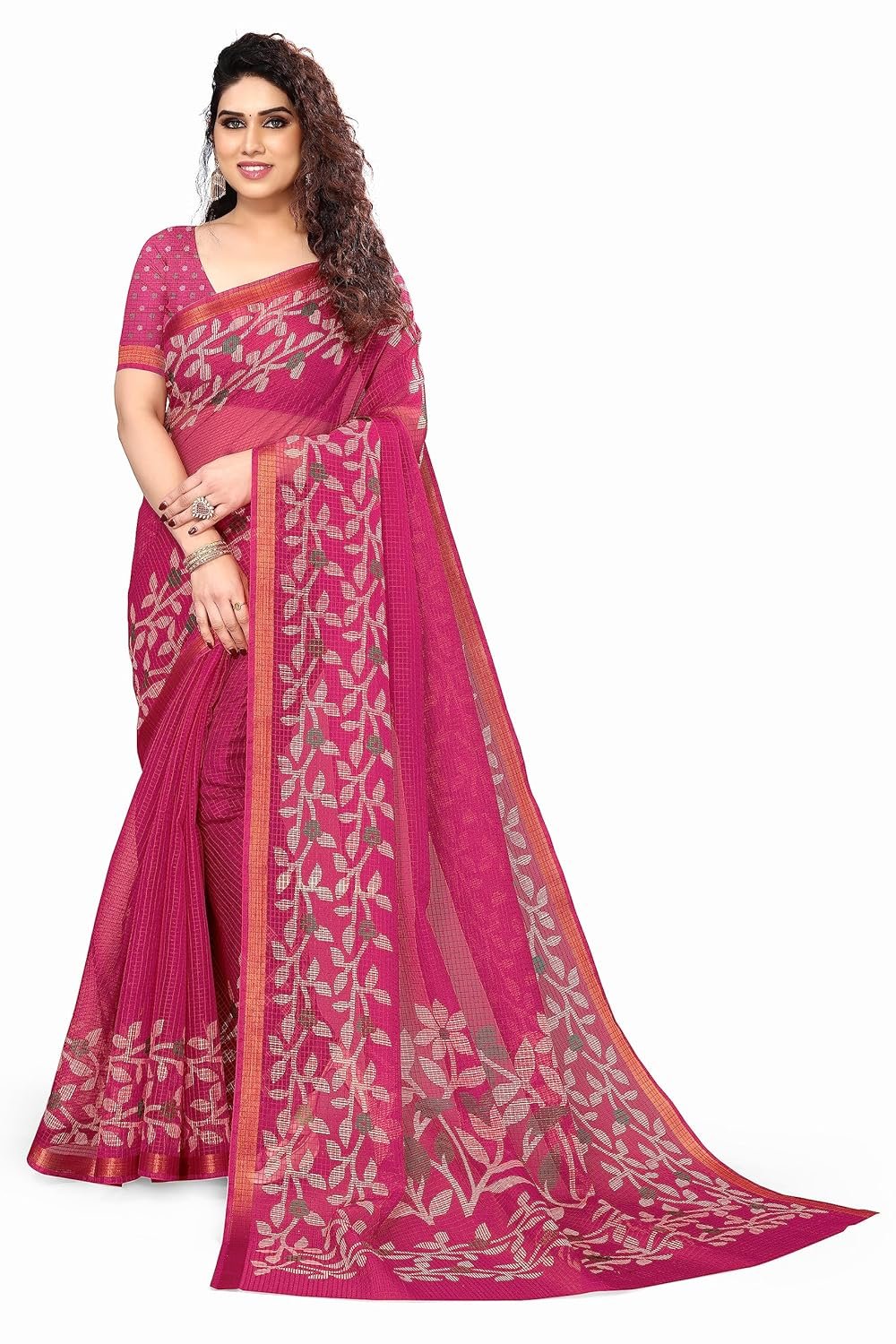 Elevate your ethnic ensemble with the MIRCHI FASHION Women’s Kota Doriya Blend Floral Printed Saree with Blouse Piece. This stunning saree boasts intricate floral prints on a luxurious kota doriya blend fabric, combining elegance with comfort. Paired with a matching blouse piece, it offers a complete ensemble that exudes grace and sophistication. Perfect for both casual and special occasions, this saree is a timeless addition to any woman’s wardrobe.