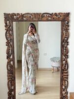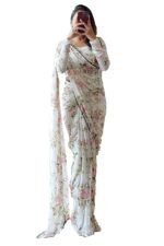 MISILY Women’s Georgette Digital Printed Ready To Wear one Minute Saree With Unstitched Blouse Piece