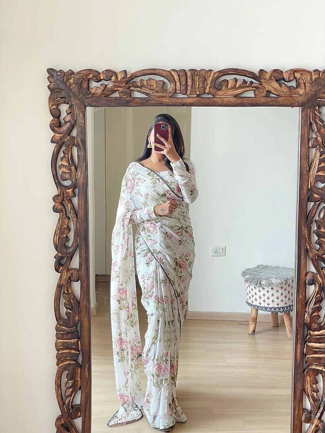 Customers appreciate the saree’s softness and comfort. They find it good value for money. However, some customers have mixed opinions on the material quality.