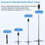 [Large ABS reinforced non-slip tripod&Super Stable]–The tripod is very stable when it is mounted with phone or camera standing on desktop or ground,because the tripod is very large and has non-slip silicone pads at the bottom of each foot,the bottom of the stick has additional ABS supports to connect each foot.