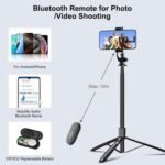 [Bluetooth selfie stick with wireless remote]–Equipped with bluetooth wireless detachable remote control, the remote control can be controlled within the range of 10m for mobile phone photos and videos.