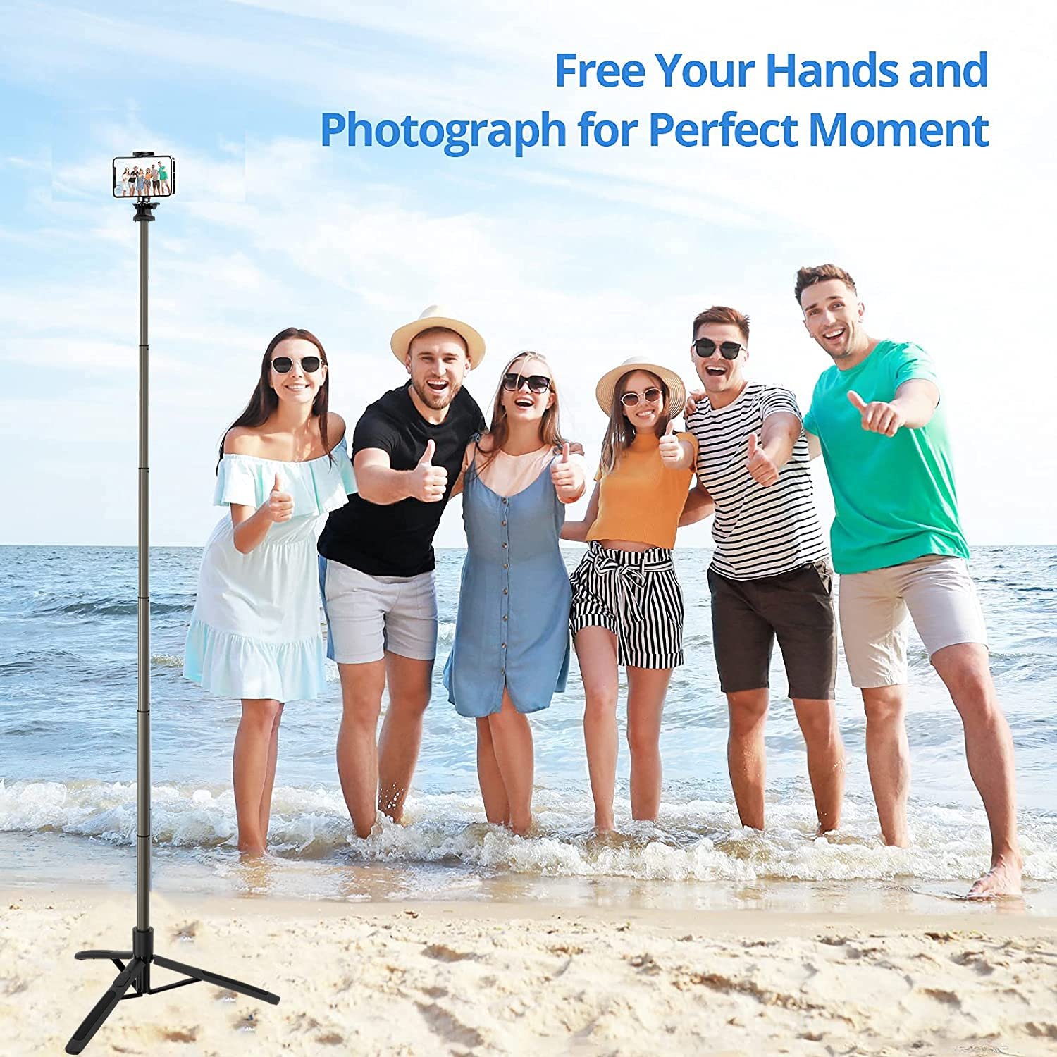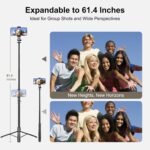 [Extra-long telescopic pole&Put more beauty into pictures or videos]–The maximum extended length is 61.4 inch/156 cm and is longer than most selfie sticks.You can choose a higher angle to capture the more wider image.The folded length is 13.1 inch/33 cm,easy to carry.