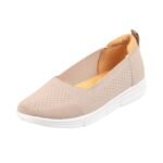 Crafted for women, these walking shoes in a versatile beige hue offer lasting comfort with a flat sole, making them a stylish choice for casual occasions and outfit enhancements.