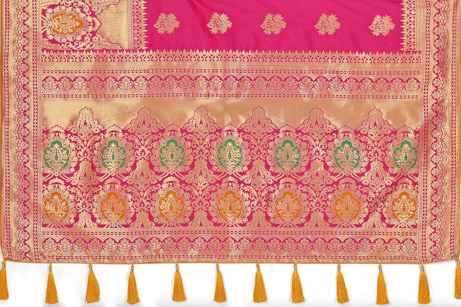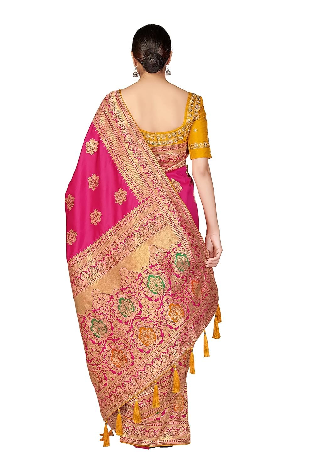 The Banarasi Silk Sarees: The Banarasi silk sarees are among the most costly and well-known sarees woven in Benaras. It is typically made of gold string and accordingly is over the top expensive. These sarees are well known as wedding wear and incorporate four assortments: the kora, the Katari, the sattir and the georgette. The plans on the Banarasi sarees incorporate plans of creatures, botanical plans, themes and nature. Weavers require a month to finish a solitary saree.Be trending elegant! For that the entire day work or ideal evening in this lightweight, solace to wear this Banarasi look workmanship silk saree for ladies.Material: Craftsmanship Silk material is breezy, light and truly agreeable to wear. It is additionally well known for being breathable and not protecting the body – ideal for warm and muggy environments.Rich Pallu: Saree Pallu is woven which makes the saree look rich. You can wear it to relaxed events as well as make it a piece of your bubbly wear. It can complement the magnificence of all age ladiesExemplification of Elegance: A saree is the exemplification of elegance and balance, returning ages regardless stands as the pride of customary Indian style. You generally pick the ideal tones to wear for various ceremonies and events. This conventional Banarasi saree is the ideal decision for you.LENGTH – Length of Saree: 5.5 Meters – Length of Blouse: 0.8 Meters – Width of Saree: 1.1 Meters.OCCASION: Party Wear, Wedding, Evening, Ceremony.INSIDE THE BOX- 1 X Unstitched Saree – 1 X Attached Unstitched Blouse (Stitch according to fit)NOTE: The tone might differ because of your screen settings. In any case, the item is the same as displayed in the picture. 100 percent SATISFACTION GUARANTEED. The blouse is joined with the saree, you want to remove from the saree.The Saree from the house of MONJOLIKA is designed as per the latest trends giving the best experience to Indian Women.