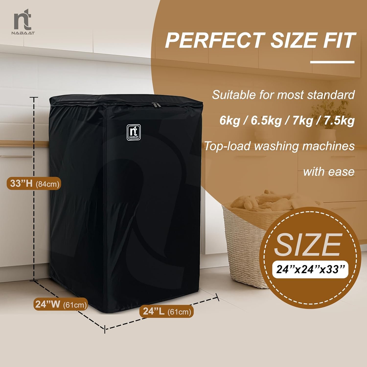 Protect your top-load washing machine in style with the NABAAT Premium Washing Machine Cover, crafted from high-quality, durable fabric for long-lasting use. Featuring strong branded metal zippers for smooth operation and an elegant finish, this cover is designed to offer complete protection and enhance your appliance’s life. Its waterproof, dustproof, and scratch-resistant fabric shields against spills, stains, and daily wear, while being easy to clean for hassle-free maintenance. A special 2 Adjustable buckle system at the back ensures a snug, perfect fit for your machine, preventing the cover from slipping and keeping it neatly in place. Thoughtfully designed pipe and wire access holders provide convenience without removing the cover, ensuring uninterrupted use. Perfect for all seasons, this cover safeguards your machine from dust, moisture, sunlight, and accidental scratches, making it an essential investment for keeping your washing machine safe, clean, and looking new for years.