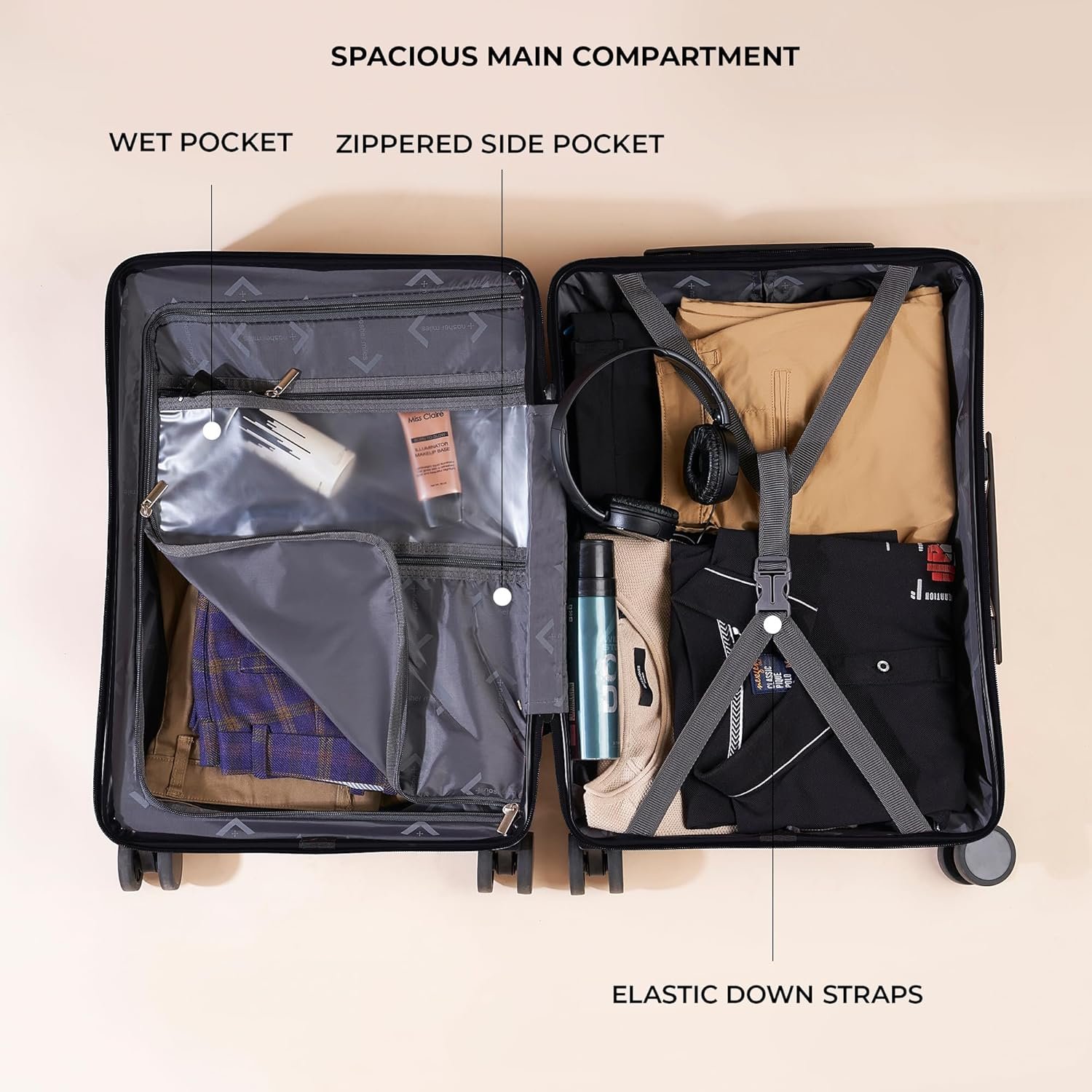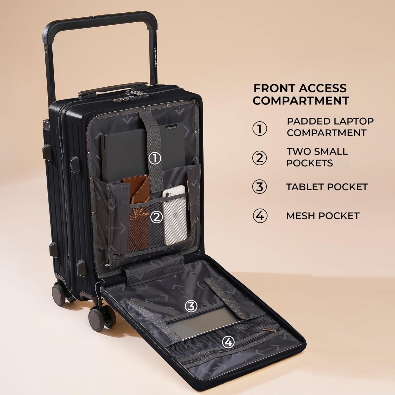 TSA Lock: Enjoy worry-free travel with the TSA-approved lock, keeping your belongings safe and accessible only to you and TSA agents, ensuring a hassle-free airport experience.