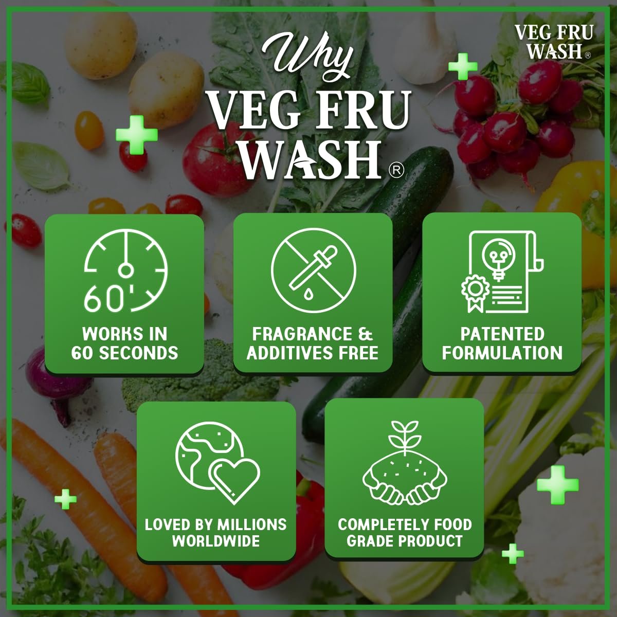 1. [🕒QUICK CLEAN IN 60 SECONDS] Our Vegetable & Fruit Wash Disinfectant Liquid is designed for efficiency, allowing you to clean your fresh produce in just 60 seconds! Simply dilute the solution, soak your fruits and vegetables for a minute, and rinse. This fast and effective process fits seamlessly into your busy lifestyle, making it easy to maintain clean and safe produce without taking up too much time.