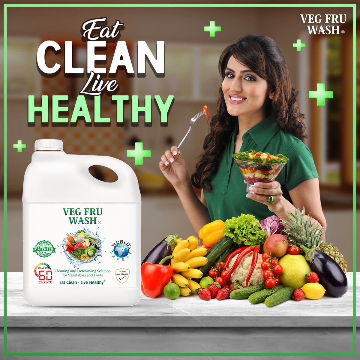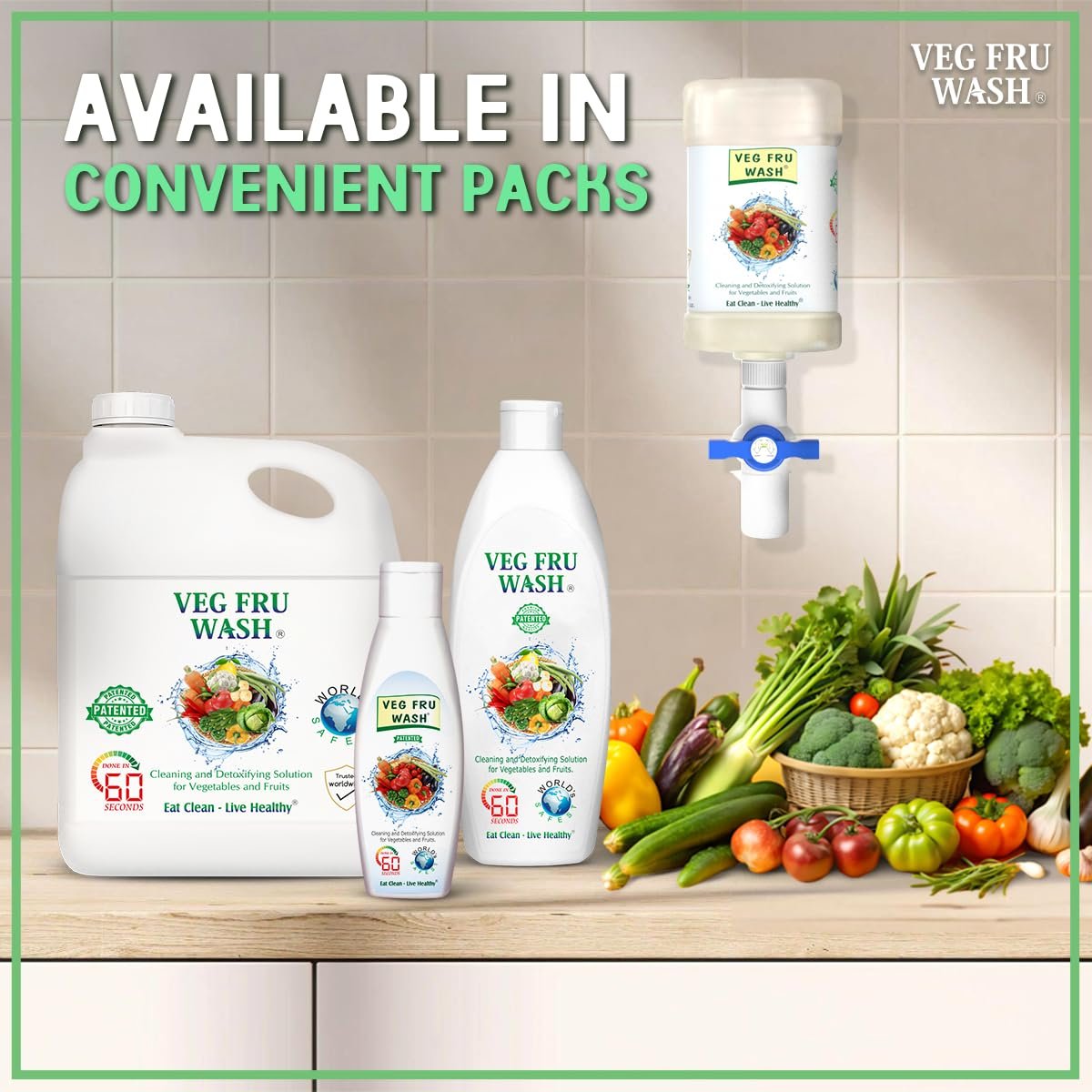 8. [✅SIMPLE & CONVENIENT USE] STEP-1 Mix 15ml (3 teaspoonful) of Veg Fru Wash in 500ml of normal water or 3% of Veg Frush Wash in water STEP-2 Soak the vegetables or fruits in the prepared solution for one minute then rub individual piece thoroughly with hand dipped within the solution STEP-3 Transfer the soaked vegetables / fruits into a strainer & wash thoroughly under running tap / clean water to finally make them squeaky clean and ready for consumption.