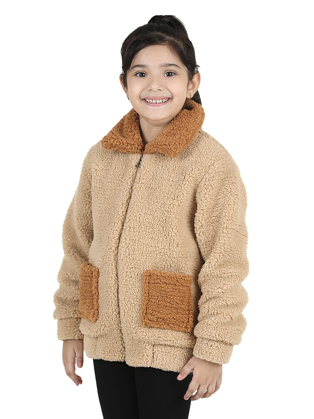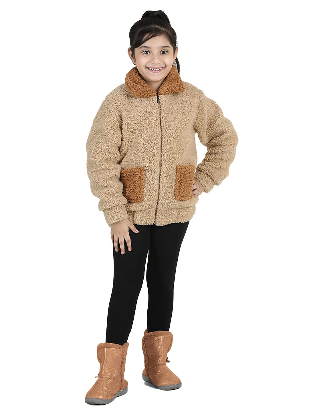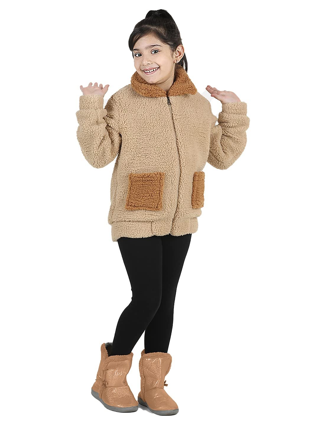 Complete her collection with this spread collar fleece jackets from naughty ninos.This Beige Jacket can be style with denim jeans and nice set of ballerina when she’s going out with her friend for a play date.