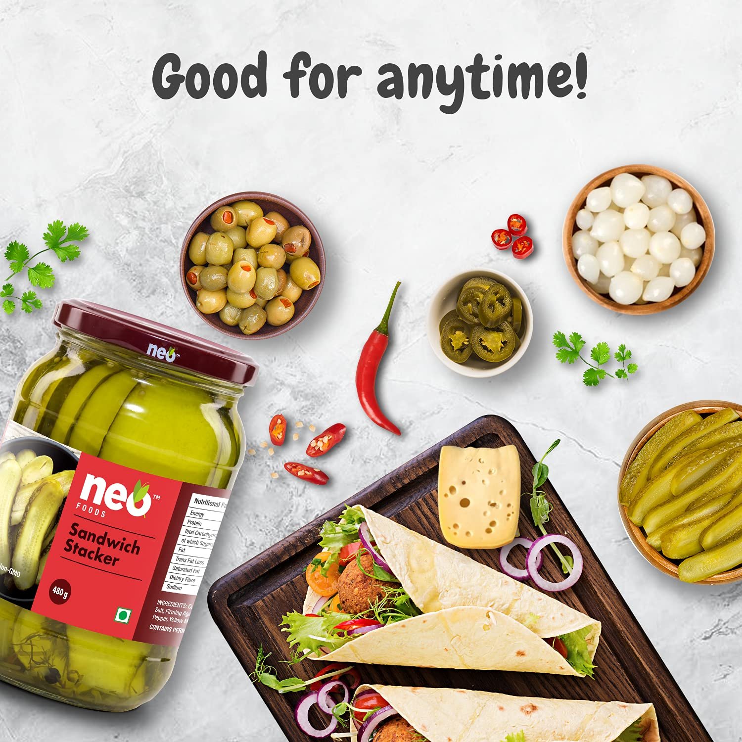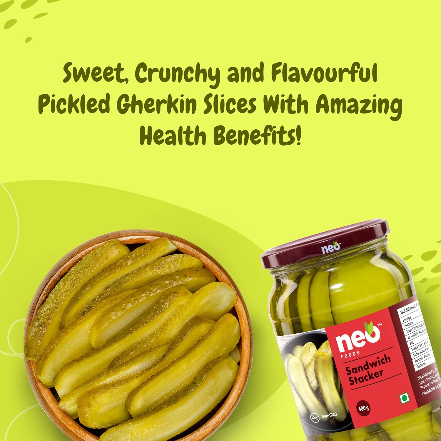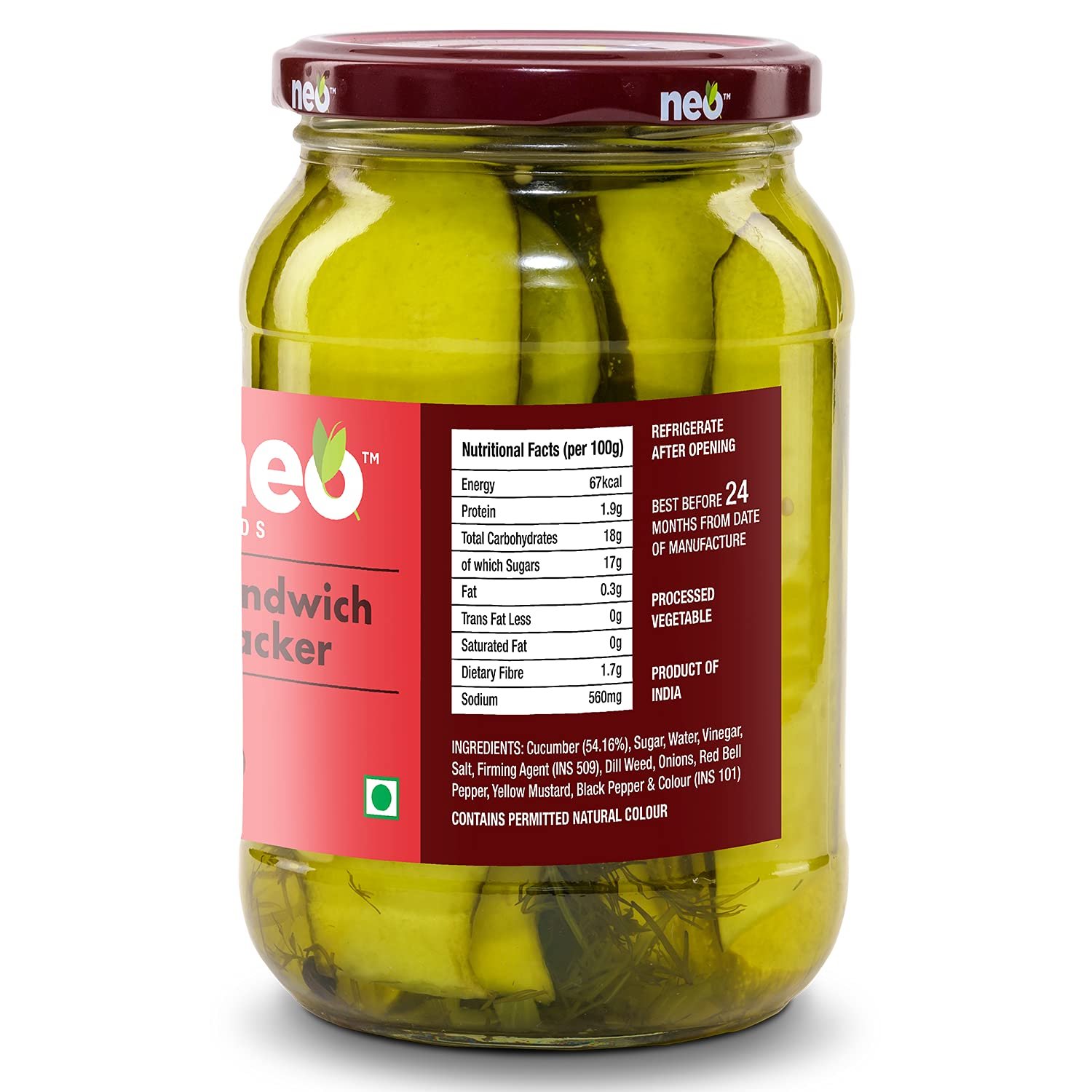 The Ultimate All-Rounder: Use these pickled sandwich stackers in burgers, hotdogs, pizzas, pasta, and wraps to add a peppy flavour and texture. These yummy and crunchy pickled slices also make a delightful side dish and go well with all kinds of drinks and snacks. Savoury and low in calories, Neo Foods Sandwich Stackers are a perfect snacking option.