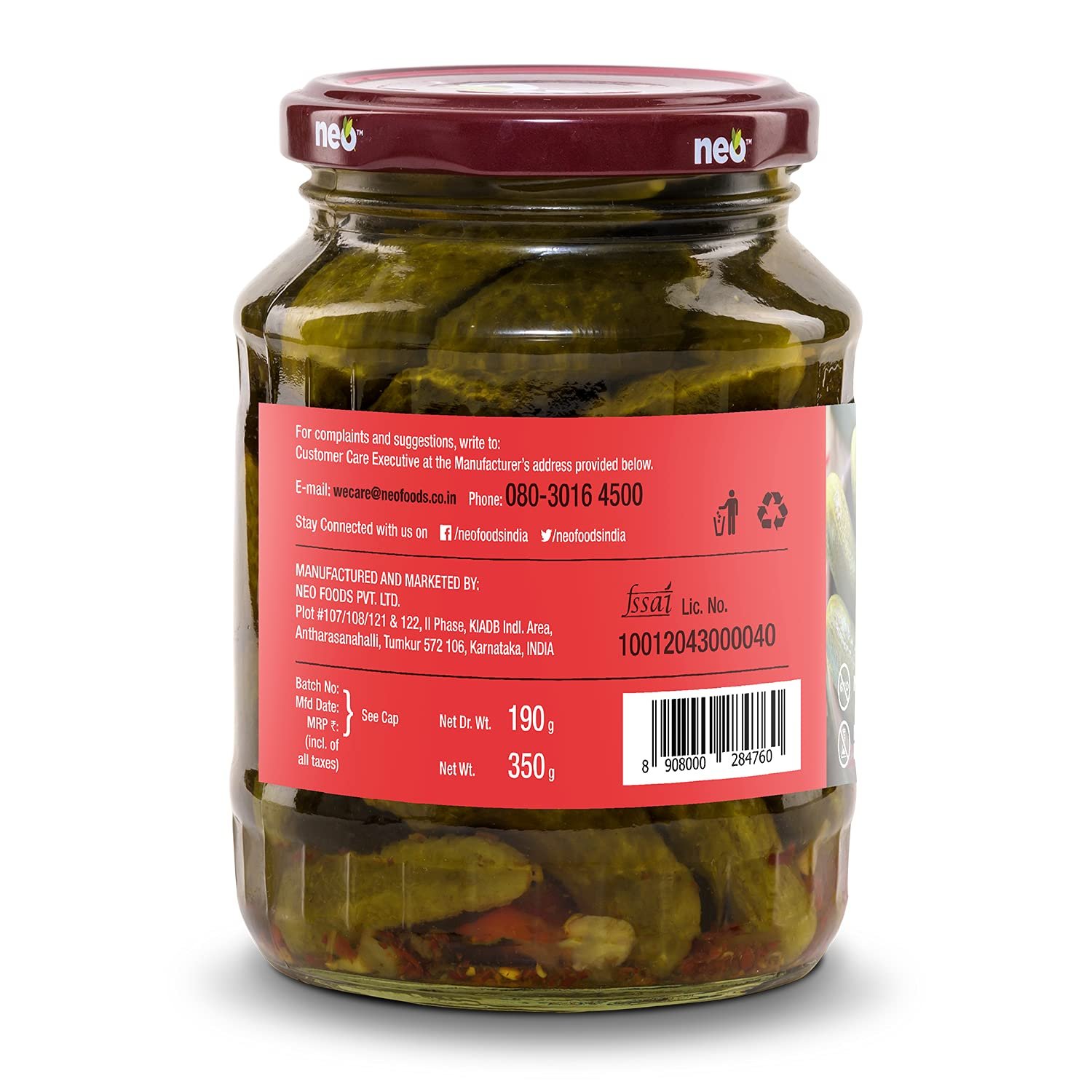 About The Brand: Neo Foods is a Bangalore based food processing company, specializes in preserved vegetables and culinary products. Our ingredients are directly sourced from farms and then processed in safe environment with all the best practices.