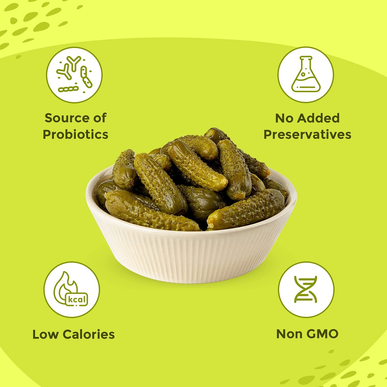 Naturally Made, Good For Health: Rich in Iron, Calcium, Vitamin A, and Potassium, these Spicy gherkins are highly nutritious. Our Spicy Gherkins have no GMO and added preservatives. The pickled cucumbers are fermented in various type of solution for a long period of time thus are rich in probiotics and considered beneficial for gut health