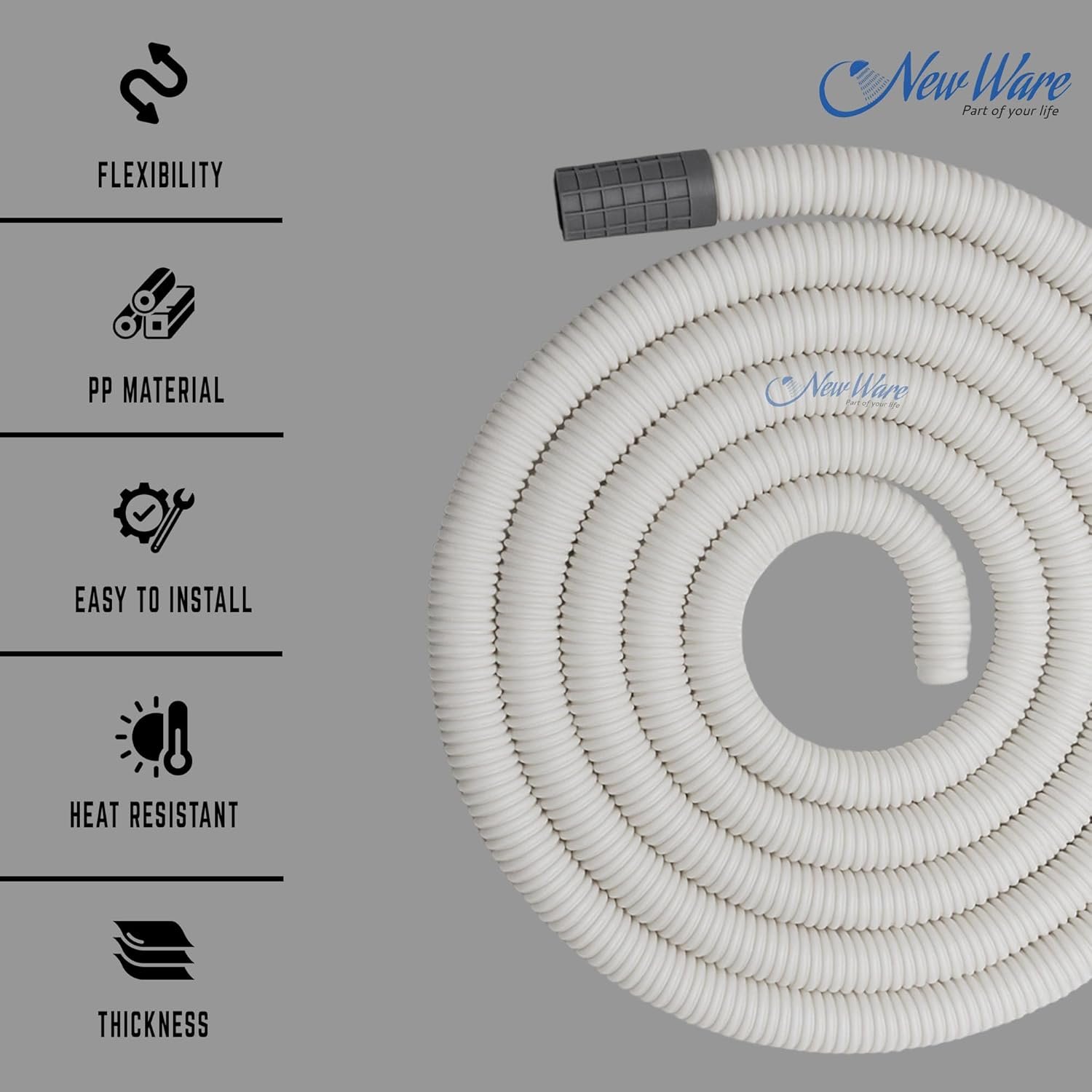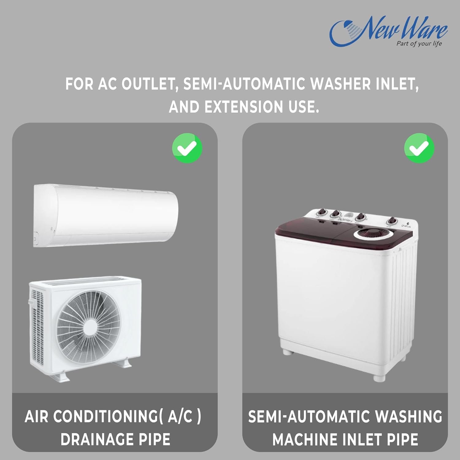Multipurpose Design: Works as a drain pipe, extension pipe, or outlet pipe, making it suitable for semi-automatic washing machines, split AC units, and general wastewater drainage.