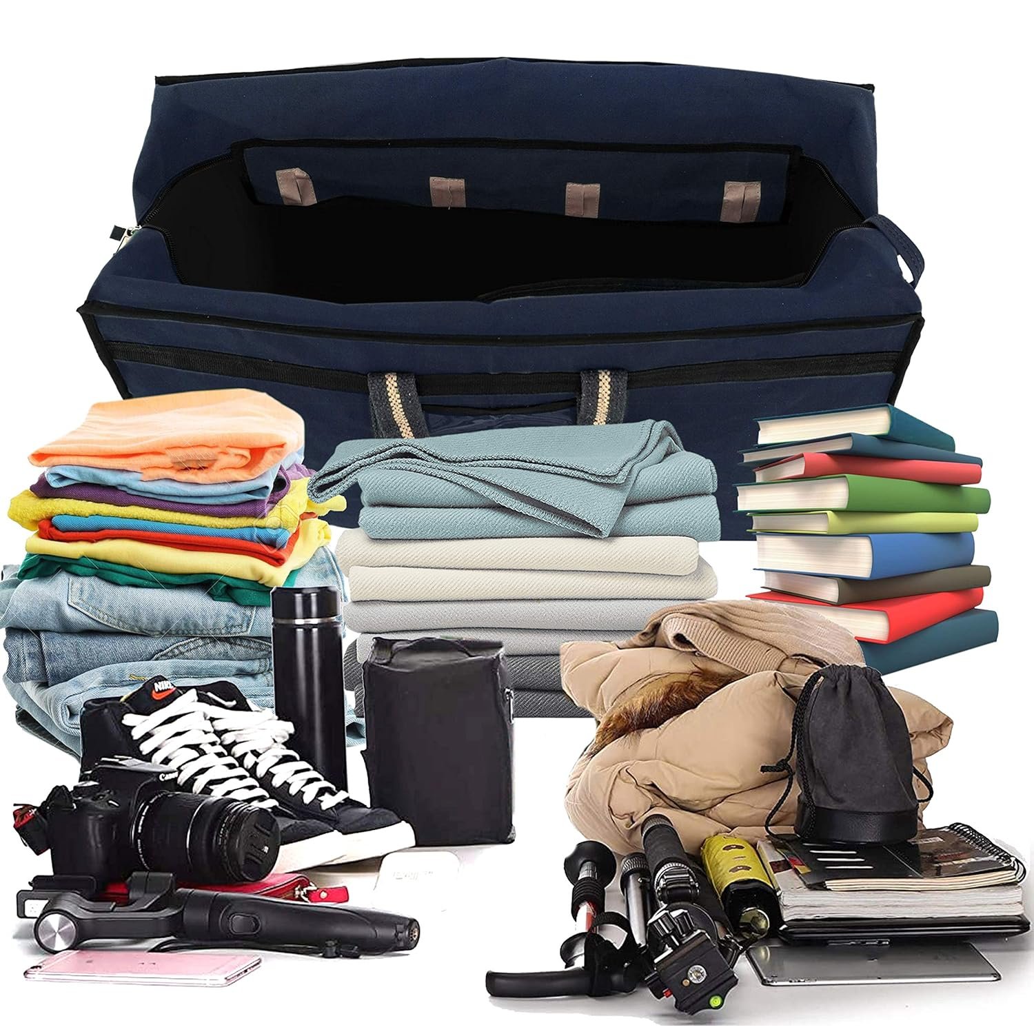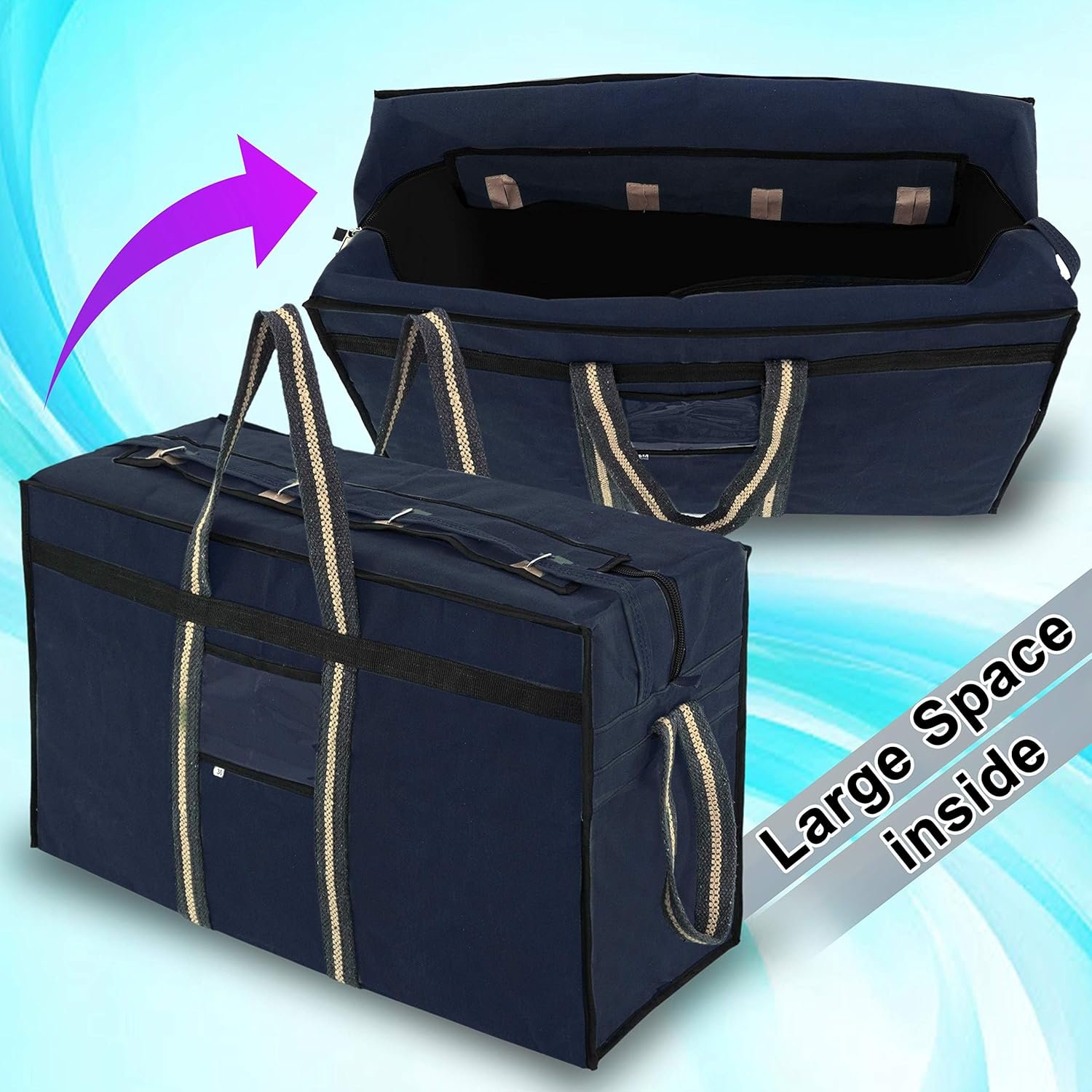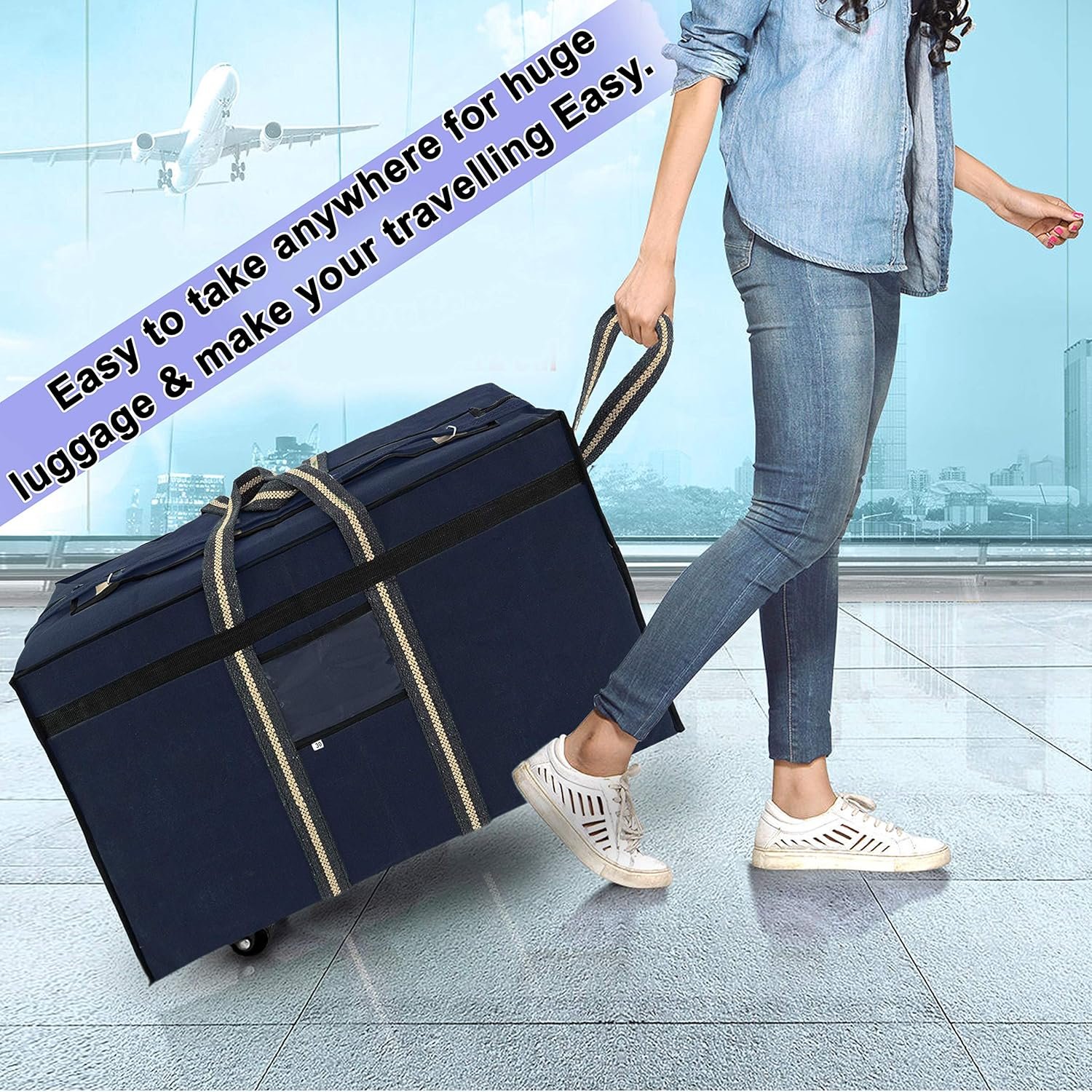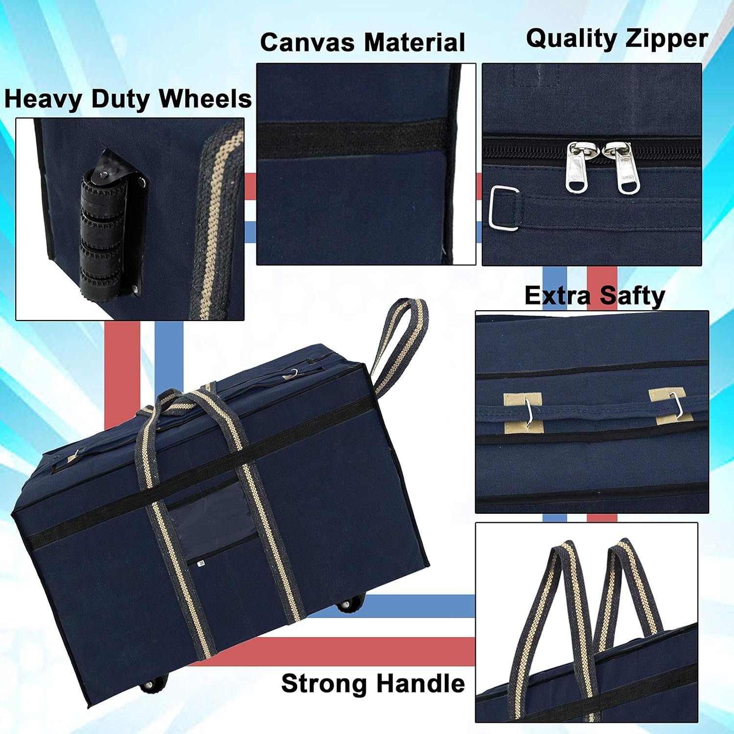 NISUN Canvas 90 Liter Large Strong Carry-On Luggage Travel Luggage Duffel Storage Bag With Six Spinner Wheels & Front Transparent Pocket (Blue, 73 X 27.5 X 45 Cm)