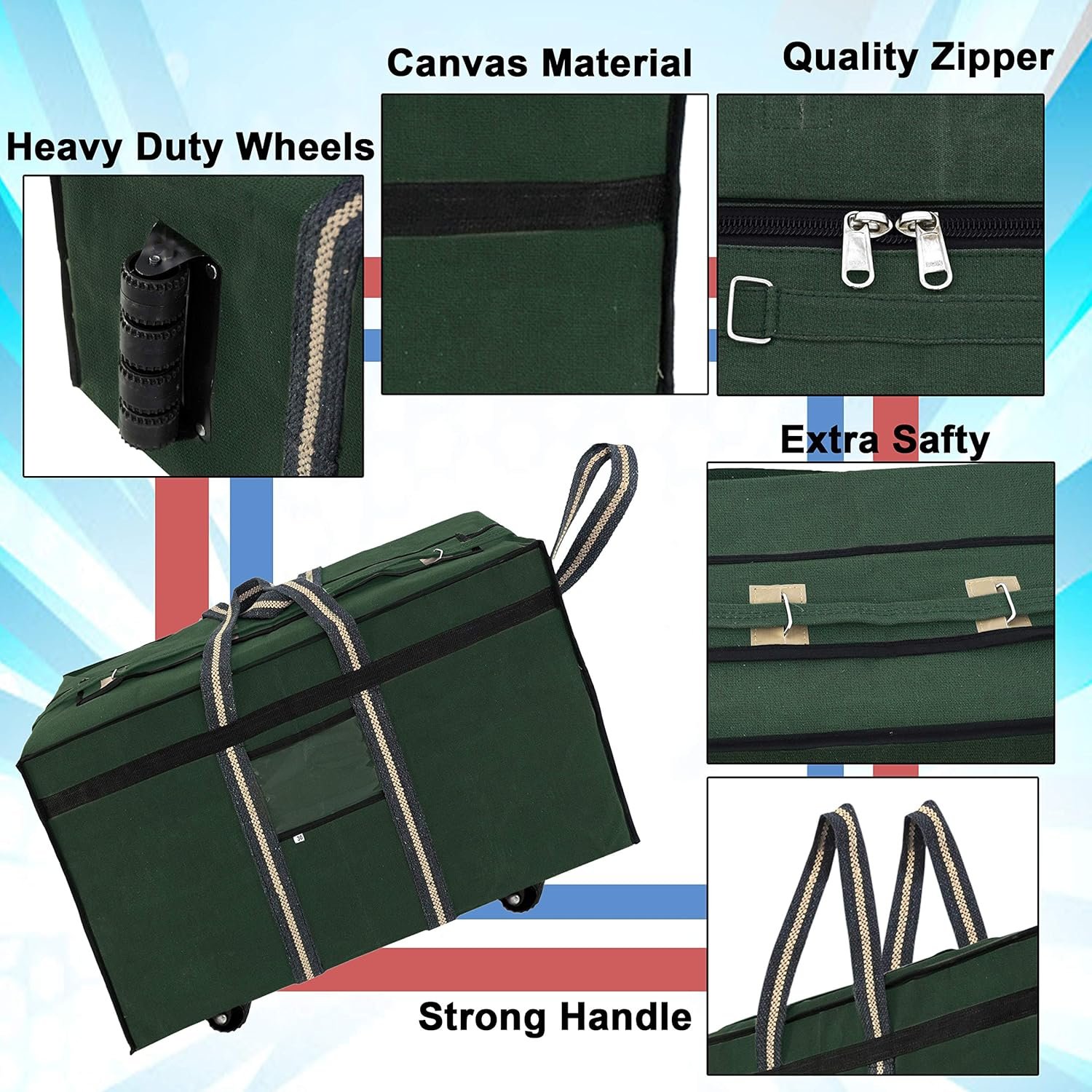 Long straps allow for easy over the shoulder carrying and small side straps make lifting heavy loads into your car or trunk easy.These bags can hold a lot and the zipper closure helps to keep everything safe and secure inside the bag.Closure Type: Anti Slide Zipper lock for safe storage of your valuable things.Rolling case Design: Easy to take anywhere for huge luggage & make your travelling Easy. The high-quality components and material were chosen to focus convenience and to ensure the stability of the bag, along with its durability