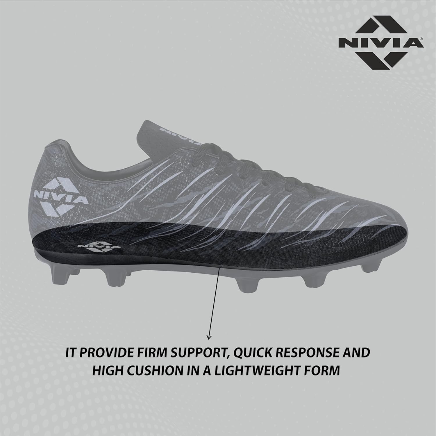 Nivia Premier Carbonite 5.0 Studs deliver enhanced grip and stability while you enjoy your favourite sport. You can use these studs for your daily practise sessions. They have a sole made from premium quality material for enhanced durability. The PVC synthetic leather upper will encase each foot in durable comfort. It creates a better, healthier environment for your feet to thrive in. The construction produces an irritation-free fit, reducing bulk, layers, and weight lacing system works to deliver an anatomically correct fit. Two layers of high-density foam line the collar and mould to the athlete’s foot to create a personalised heel fit,adding soft support and custom comfort. standard adjustable nylon lace. Die CUt soft cushion sockliner exists as an extra layer of plush,step-in comfort. Lightweight insoles provide more comfort and grip. The TPU sole provides excellent stability and traction.