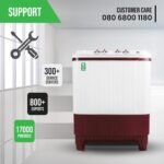 Special Features: Extra wide Toughened glass lid for both Wash Drum and Spin Drum. Lint Collector, Unidirectional Wheel, Rust Free Plastic Base