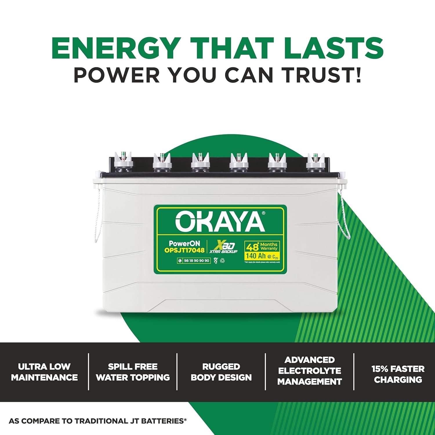 Okaya’s Advanced SJT Inverter Battery is best compatible with Okaya’s Advanced Home UPS/Inverter
