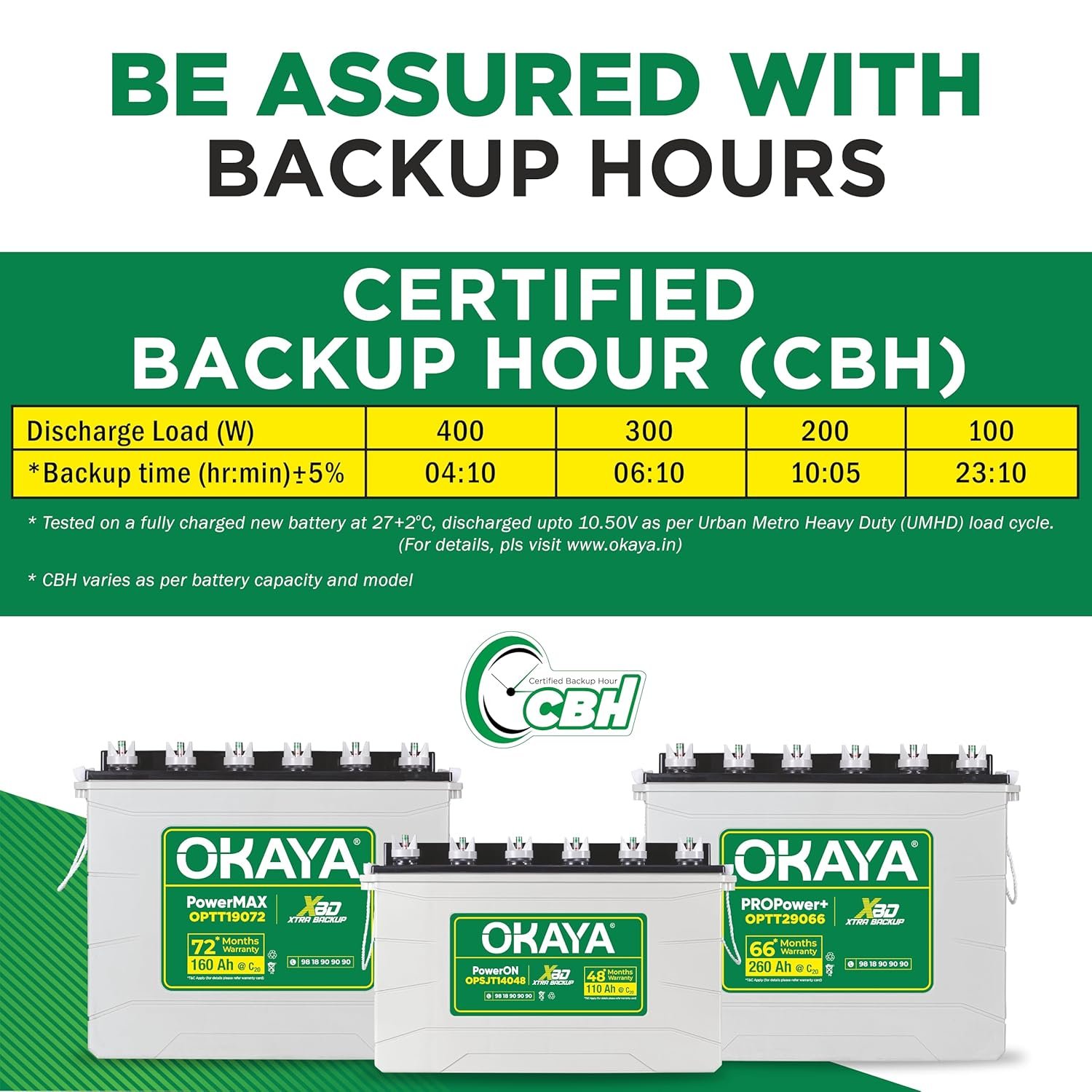 All new Super Jumbo Tubular Battery, the next generation of Jumbo Tubular Battery, build to withstand the toughest conditions. The Xtra Backup Design (XBD) remains intact ensuring 15-20% longer backup time. Certified Backup Hour (CBH) – World’s first to declare actual backup time at different power loads, certified by NABL accredited Lab