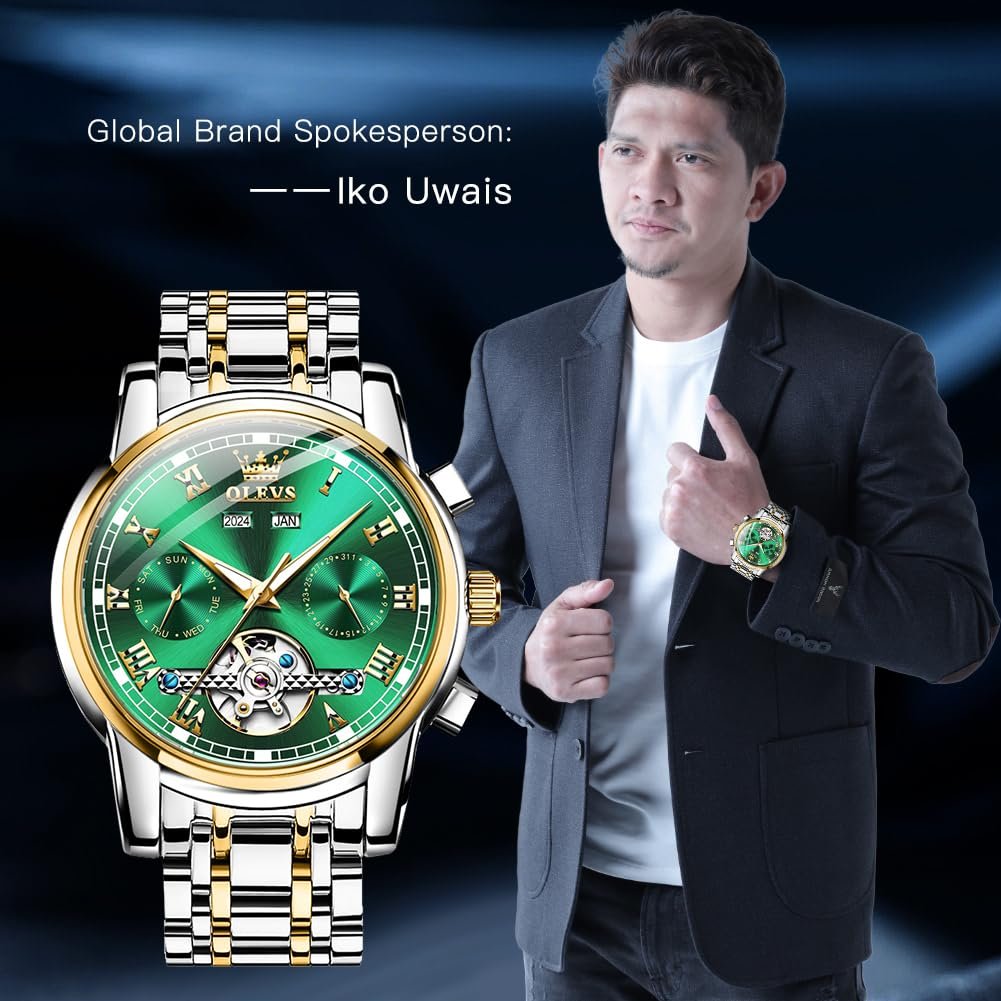 OLEVS Automatic Watch for Men Self Winding Mechanical Luxury Business Stainless Steel Multi Calendar Waterproof Luminous Wrist Watches