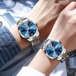 OLEVS Original Men’s Diamond Watch Analog Quartz Stainless Steel Calendar Business Dress Watch with Luminous Waterproof Casual Wristwatch