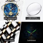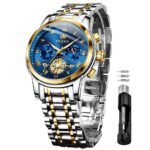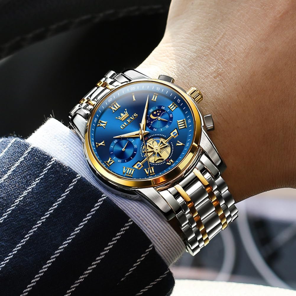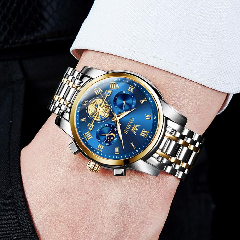 OLEVS Watches For Men Chronograph Business Wrist Watches Analog Quartz Moon Phase Stainless Steel Waterproof Luminous Dress Watches