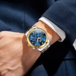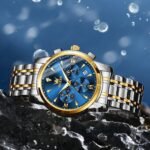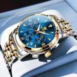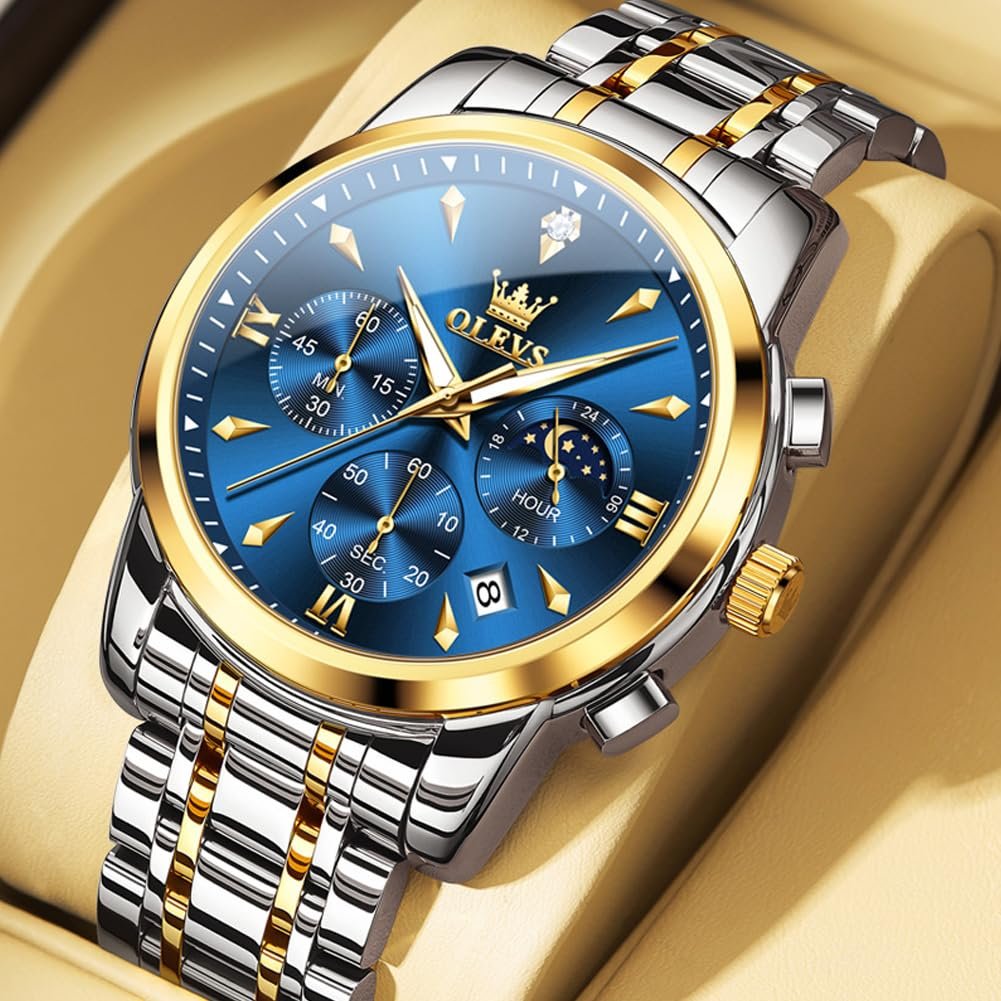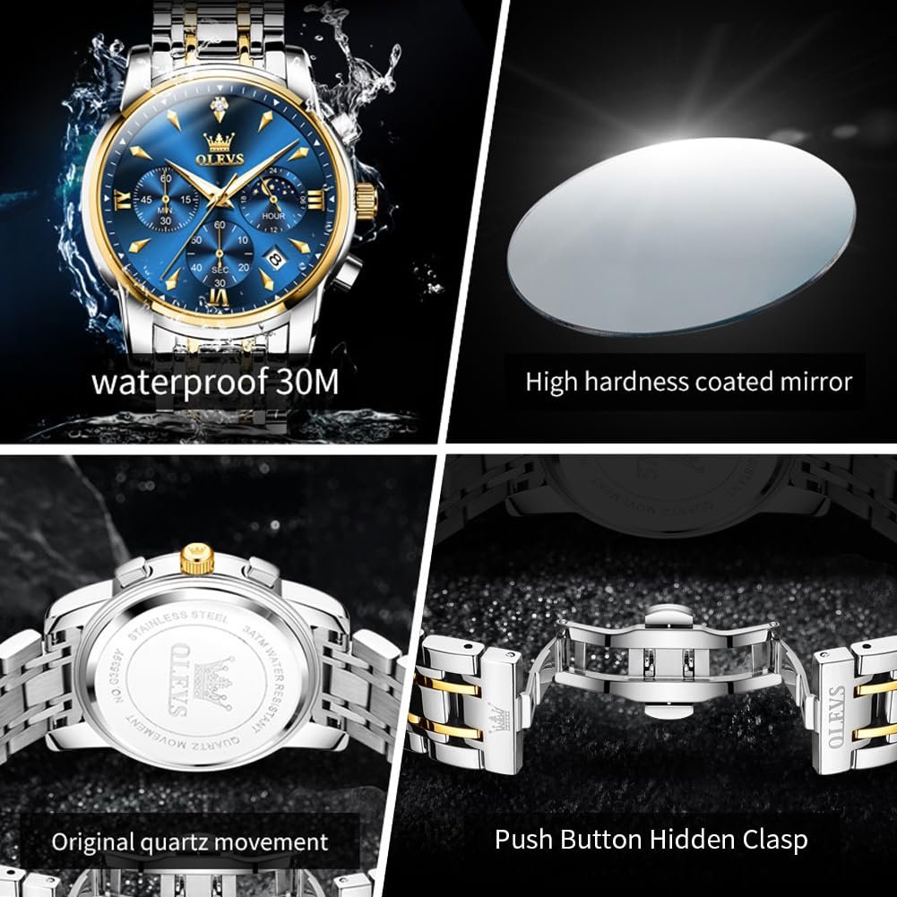 OLEVS Watches for Men Original Chronograph Luxury Business Analog Quartz Watch Waterproof Moon Phase Stainsteel Steel Diamond Mens Watch