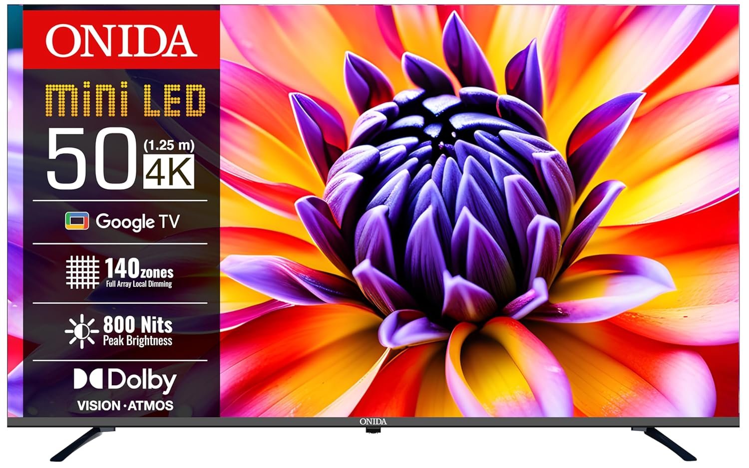 Onida’s FALD with 140 zones boosts contrast, deep blacks, vivid colors and superior picture quality.