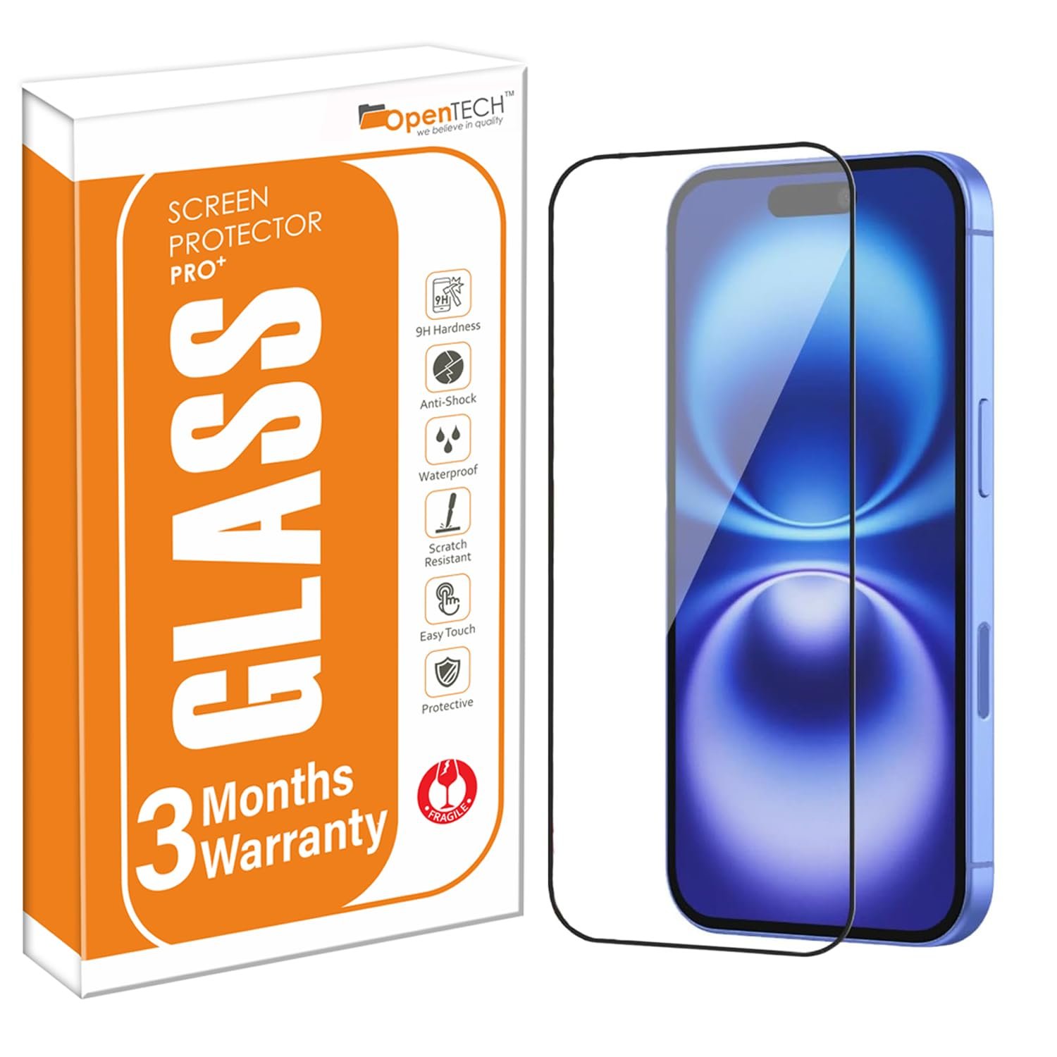 Compatible Device: iPhone 16 Easy Installation: This iPhone 16 edge to edge screen protector is bubble free adhesive and easy to install. You can follow installation guidelines which printed on OpenTech box. Box Includes: iPhone 16 tempered glass glass guard, Wet wipe, Microfiber screen cleaning cloth, Dust absorber sticker, warranty card and OpenTech box with installation guidelines.