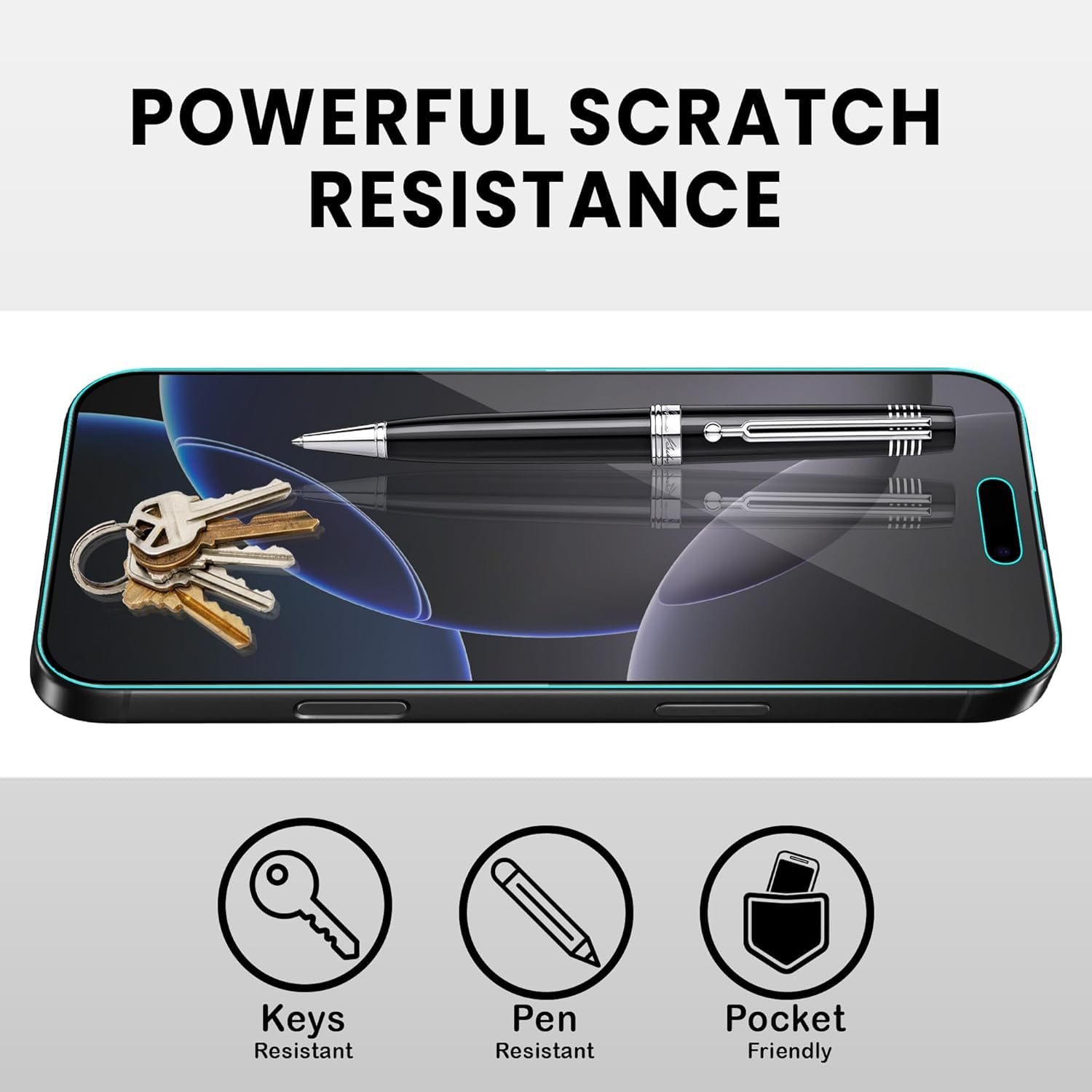 Scratch proof: This iPhone 16 screen protector provides the 9H Hardness screen protector can effectively protect your phone from unwanted scuffs and scratches by knife, keys and some other hard substances. The surface of the iPhone 16 gorilla glass has a strong hardness and 9H tempered glass protects the entire front display. Don’t get scratches even if scratched with keys in your pocket.