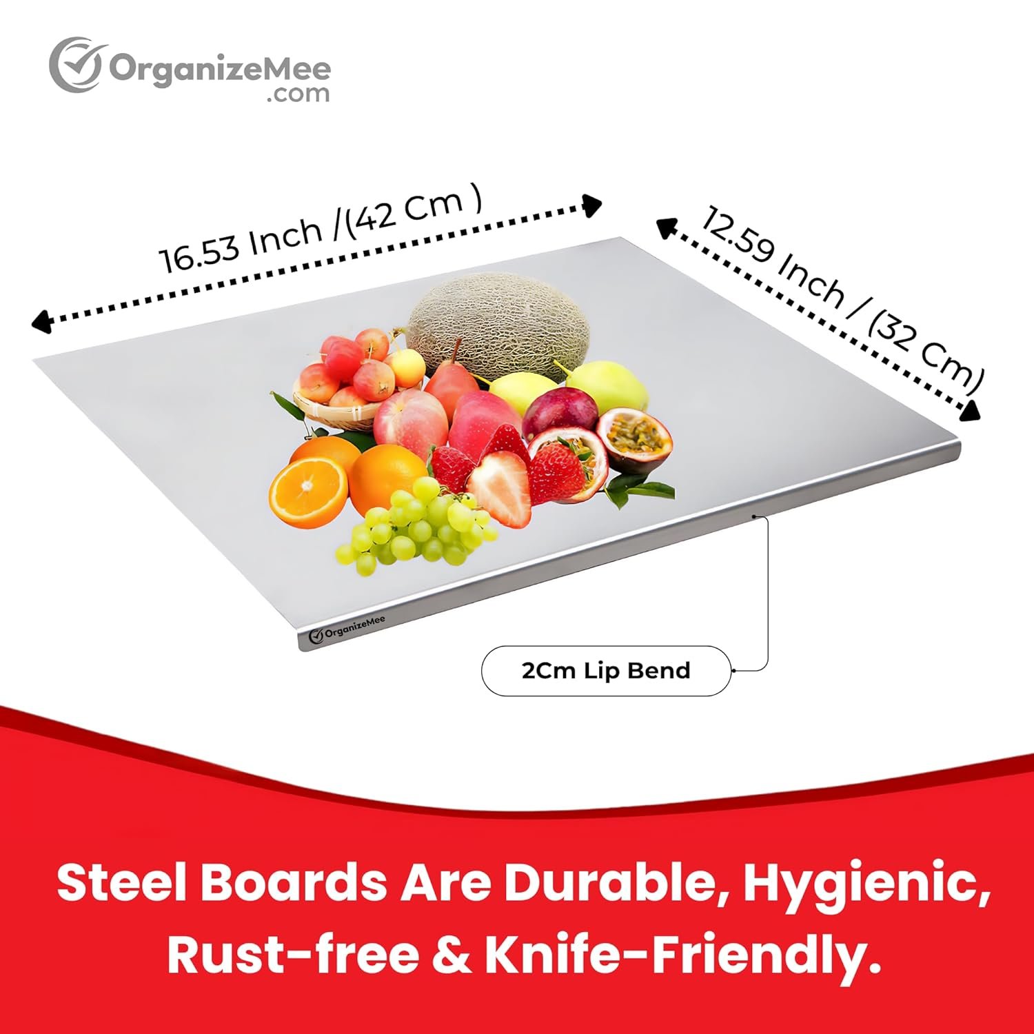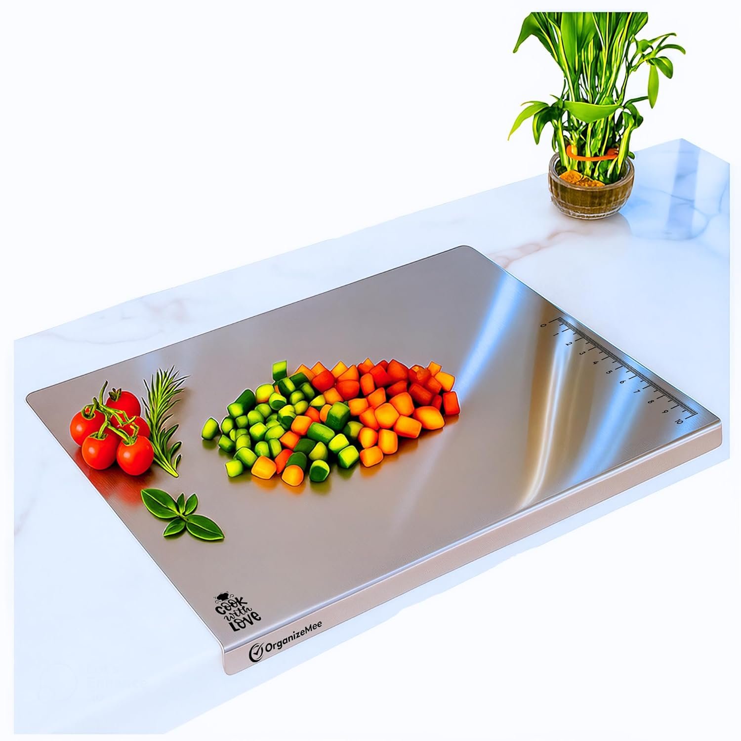 100% FOOD GRADE STAINLESS STEEL – Organizemee’s chopping board is constructed from the highest grade stainless steel, is environmentally friendly, 100% BPA free, and doesn’t include any chemicals or hazardous ingredients, so you won’t need to replace it like other wooden and plastic boards.