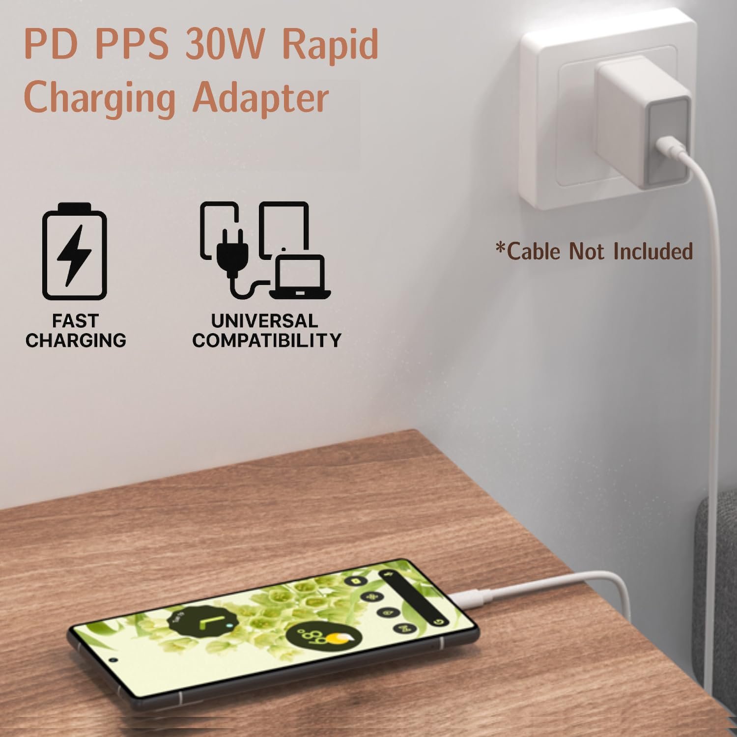 30W USB-C With PD/PPS Technology: Delivers high-speed charging for compatible with Google Pixel devices, including smartphones, tablets, and more—ideal for quick top-ups or full charges in less time.