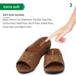 Customers like the comfort, design, and value of the sandals. They mention that they’re very soft, have a beautiful look, and are worth the money. Some also appreciate the use and pain relief. However, some customers have mixed opinions on the quality, fit, and slipperiness.